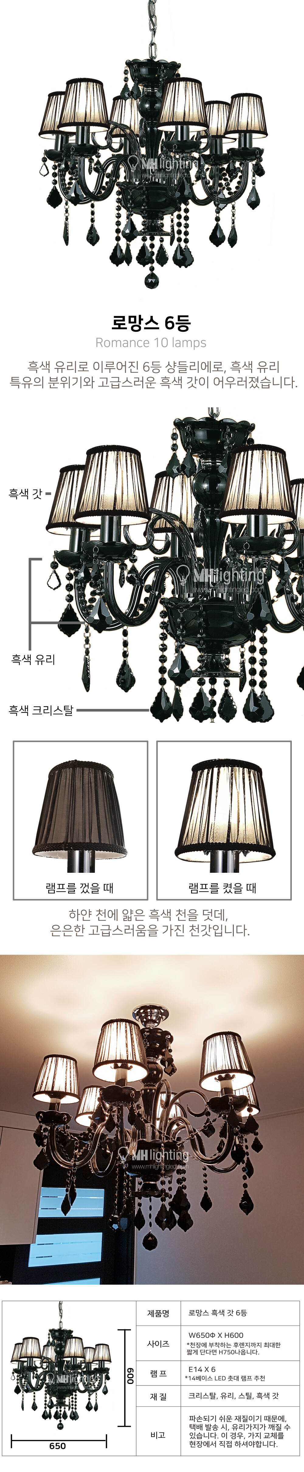 흑색유리로 이루어진 6등 샹들리에
