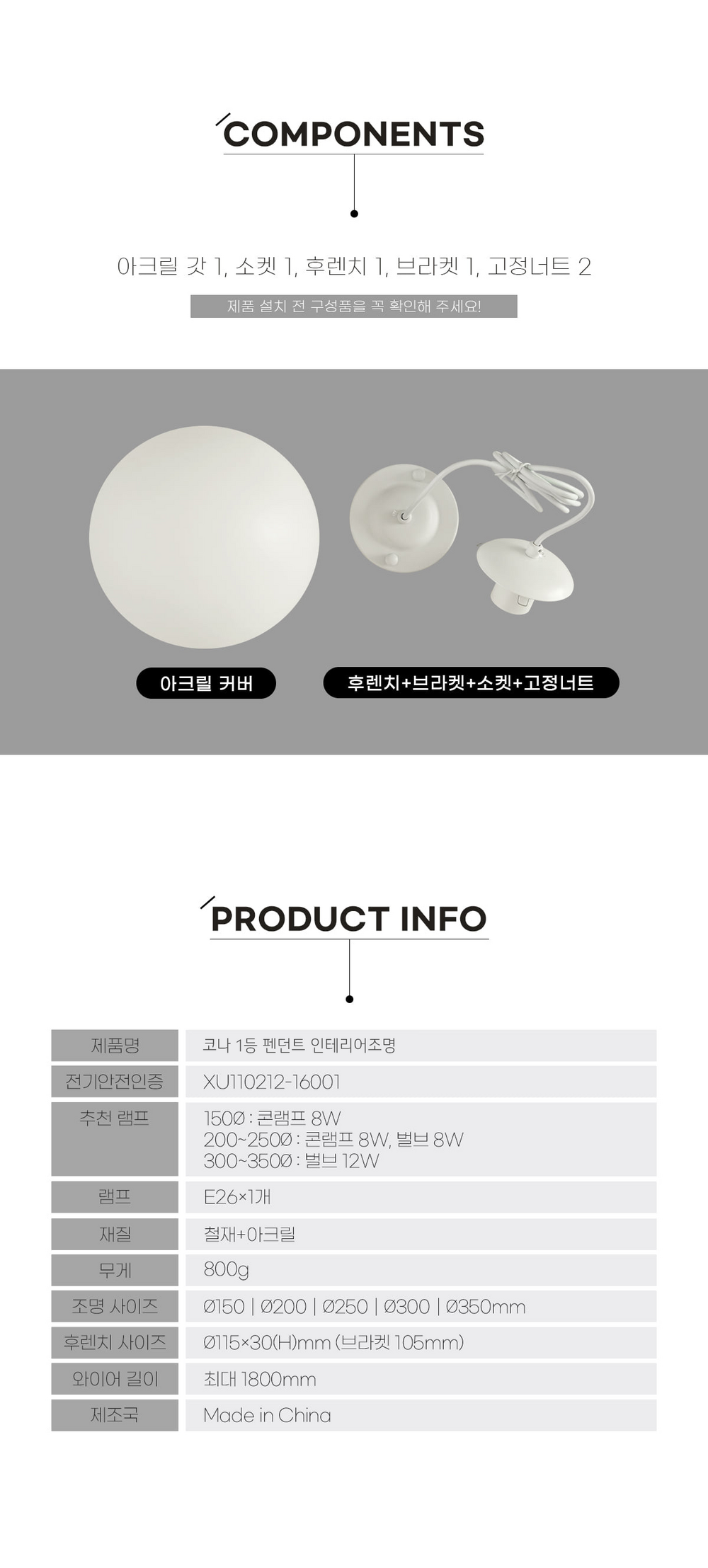 코나 1등 펜던트 (5 size)