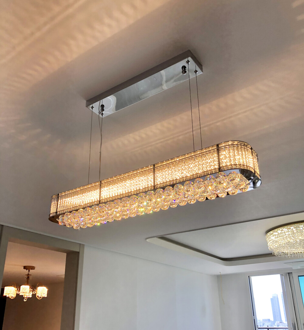 화려한 지구볼 크리스탈이 반짝이는 럭셔리한 식탁등