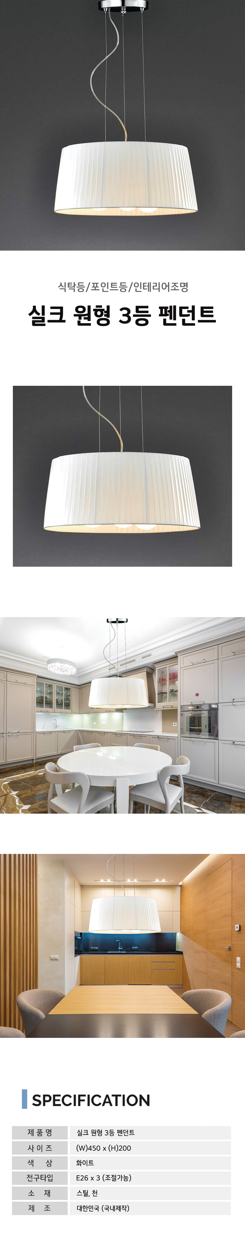 실크 원형 3등 펜던트