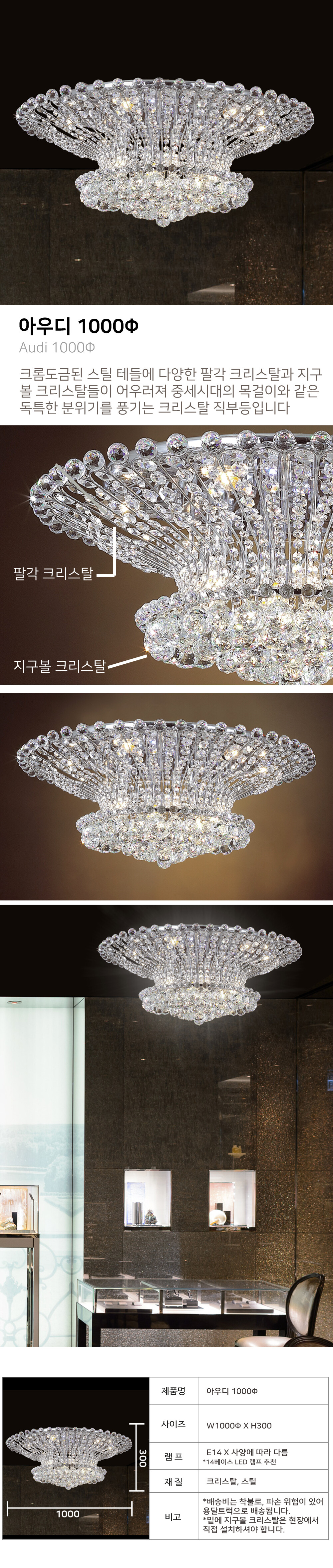 팔각 크리스탈과 지구볼 크리스탈들이 어우러져 럭셔리한 공간을 연출해주는 크리스탈 직부조명.