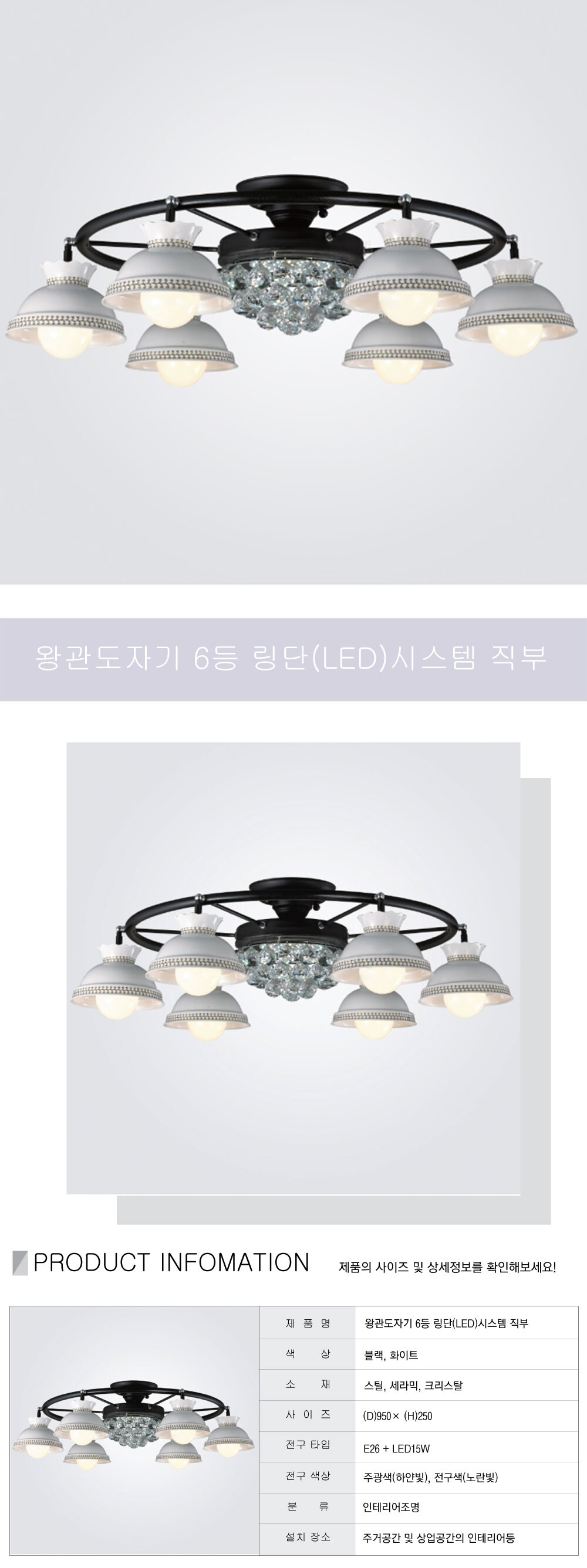 LED 왕관 도자기 6등 링단 시스템 직부