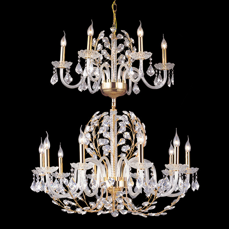 투명한 유리접시와 유리가지 그리고 샹들리에를 장식하는 크리스타링 매달린 나뭇잎 장식을 가진 크리스탈 샹들리에