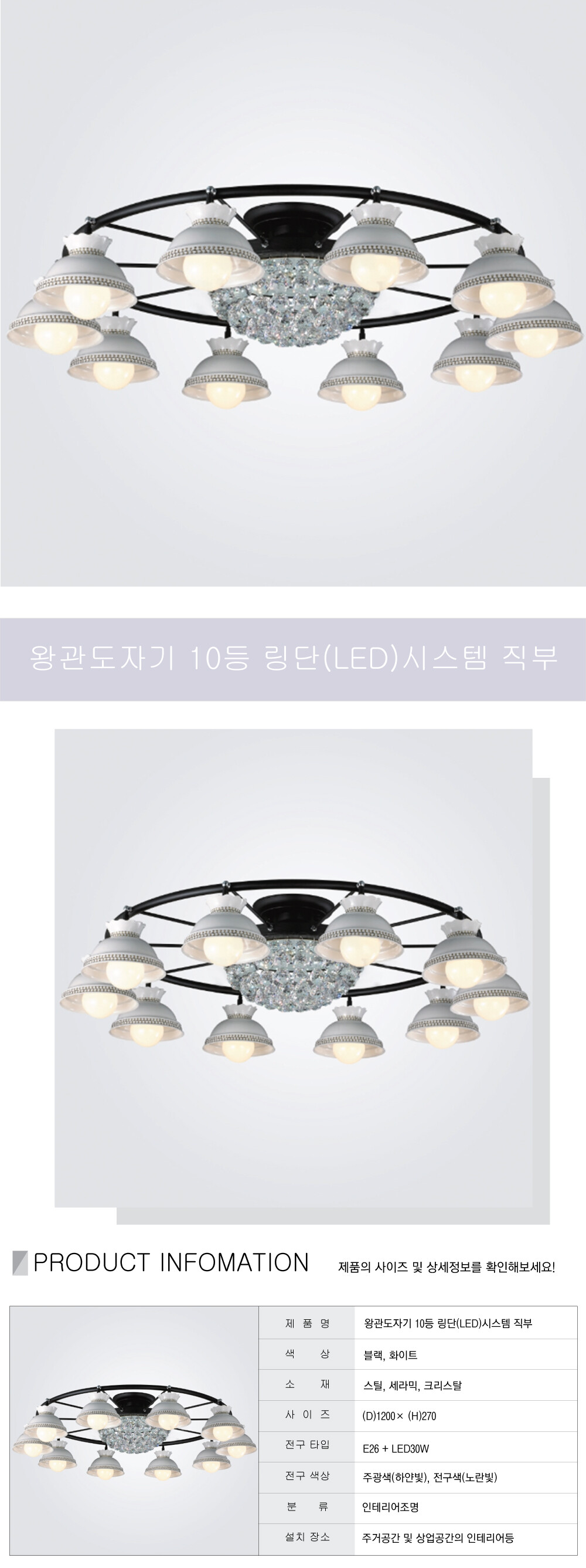 LED 왕관 도자기 10등 링단 시스템 직부