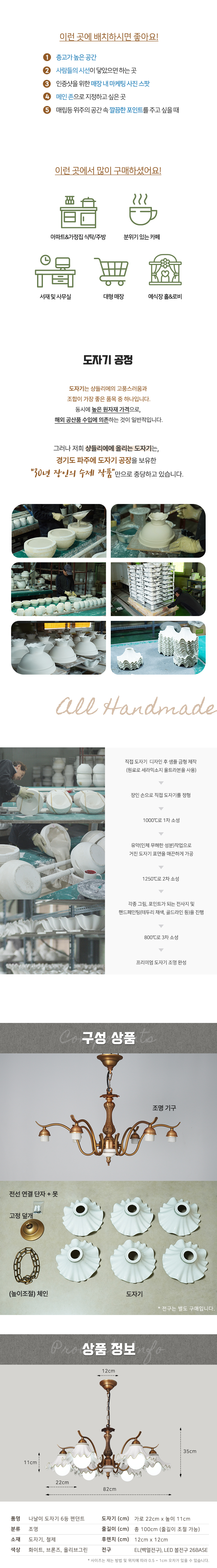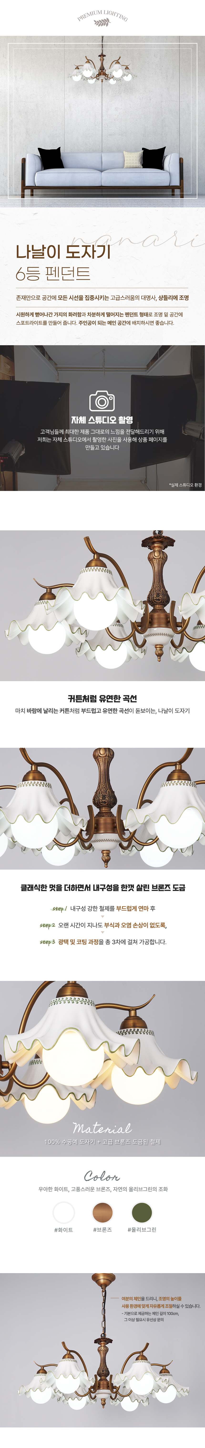 나날이 도자기 6등 펜던트