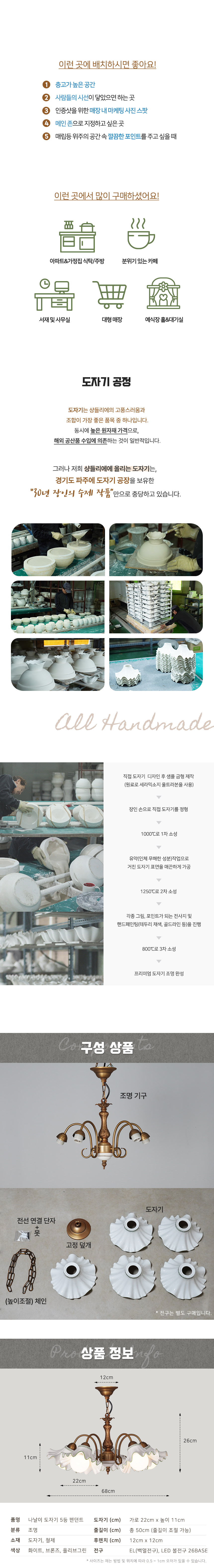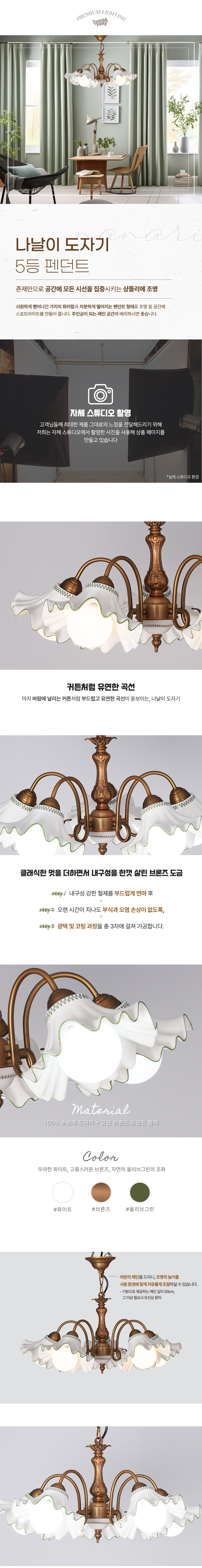 나날이 도자기 원형 5등 펜던트