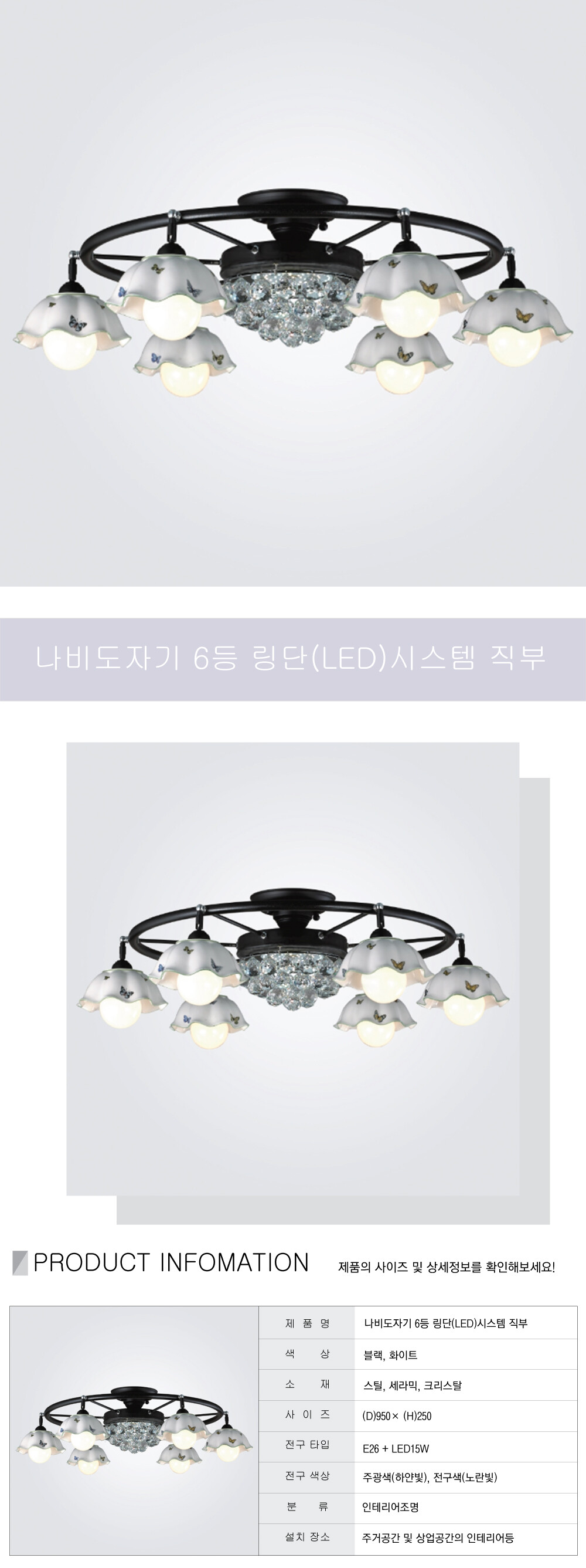 LED 나비 도자기 6등 링단 시스템 직부
