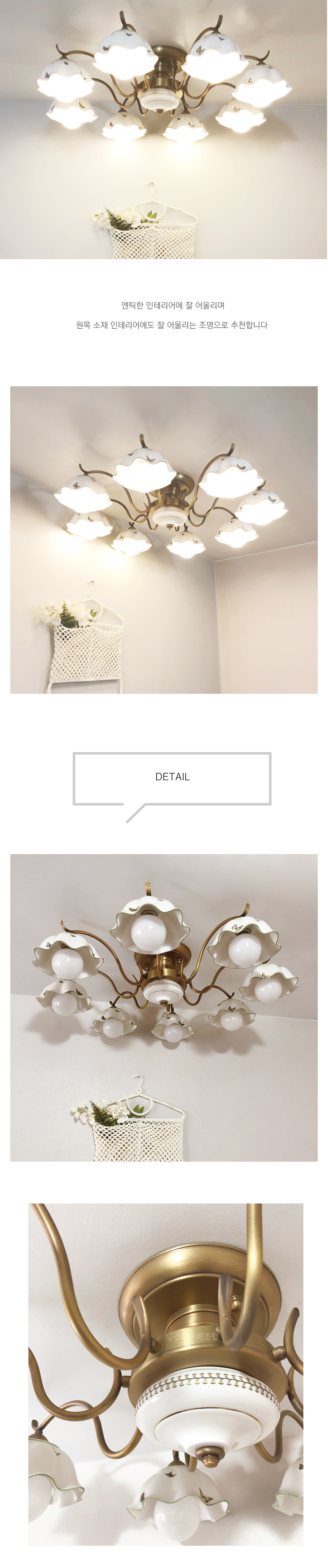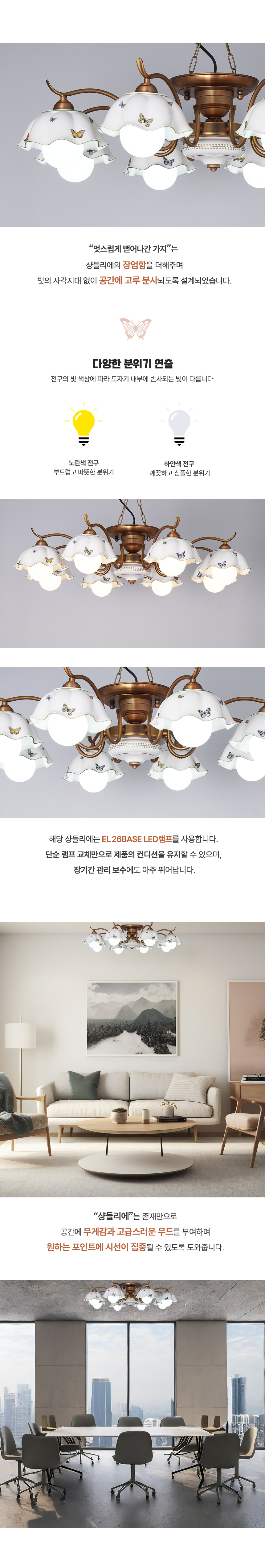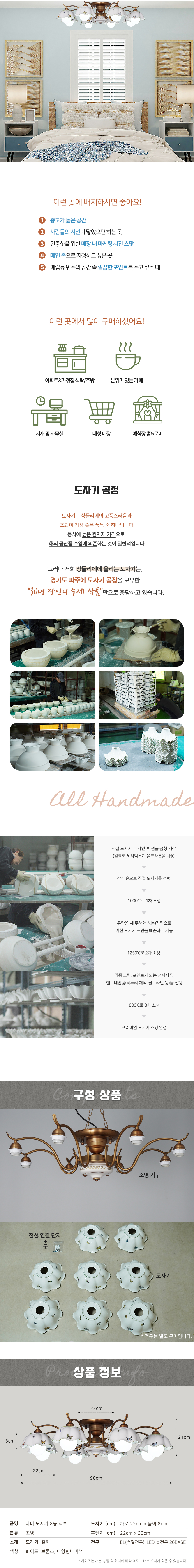 꽃잎처럼 펼쳐진 갓에 나비가 내려앉은 듯한 디자인의 도자기조명.