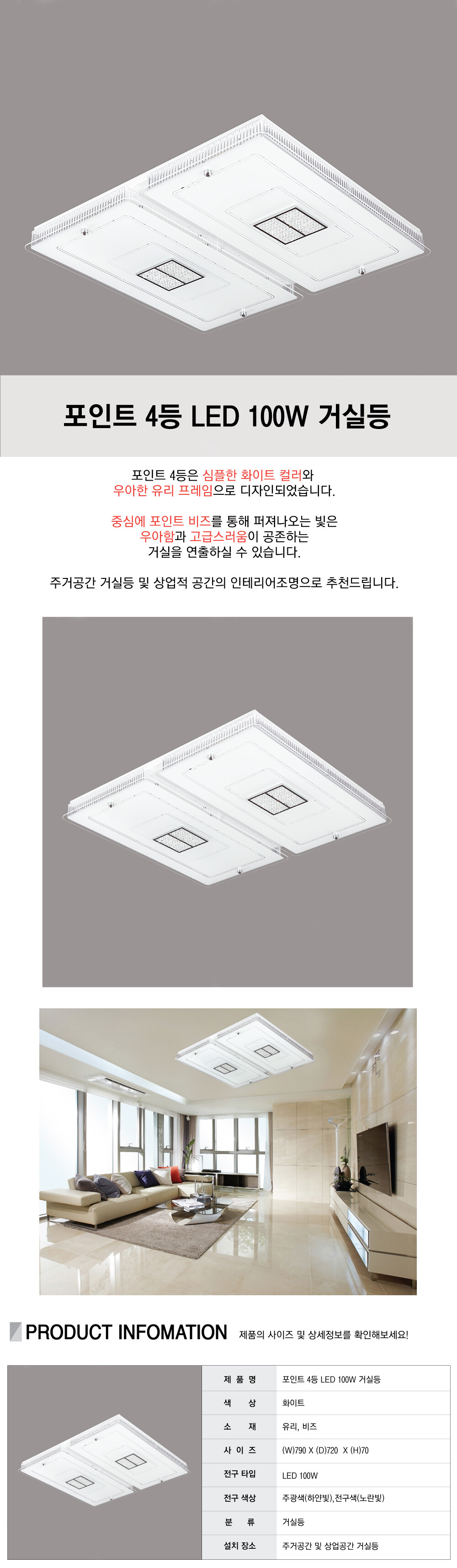 포인트 비즈 4등 거실등 [LED 100W]