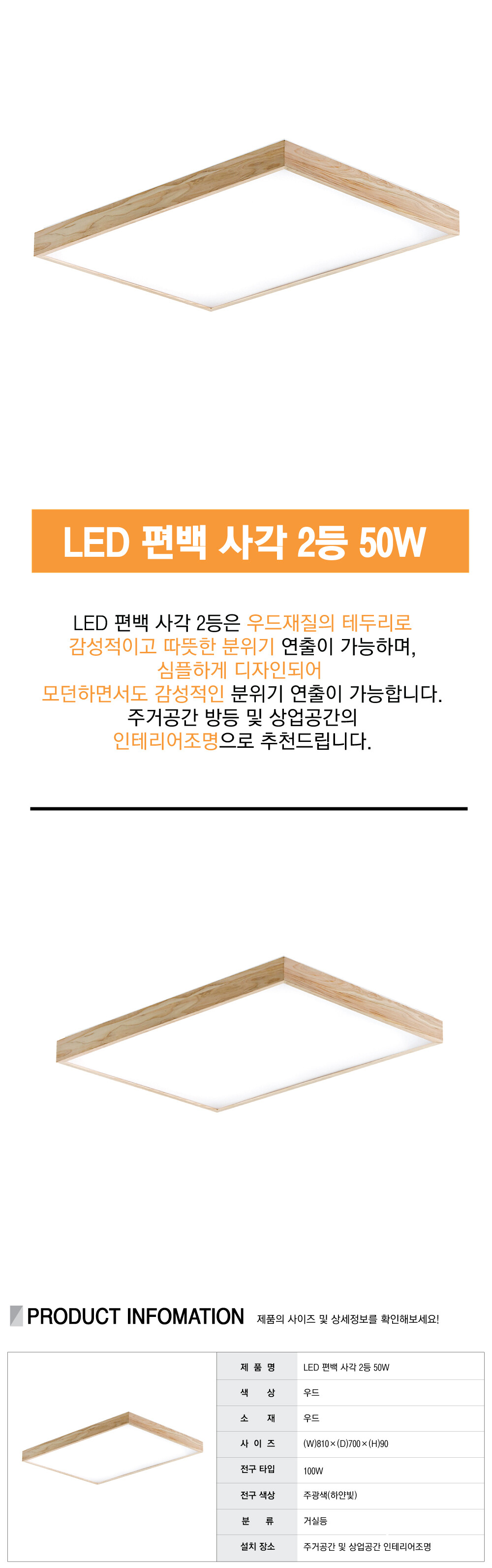 LED 편백 사각 2등 50W