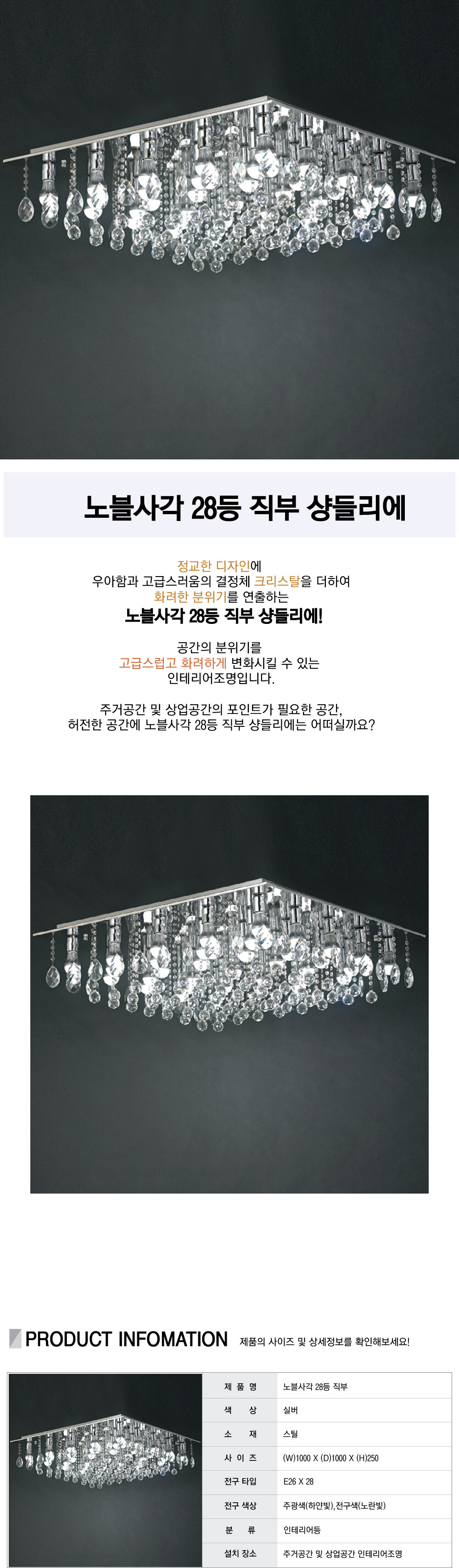 노블사각 28등 직부 샹들리에
