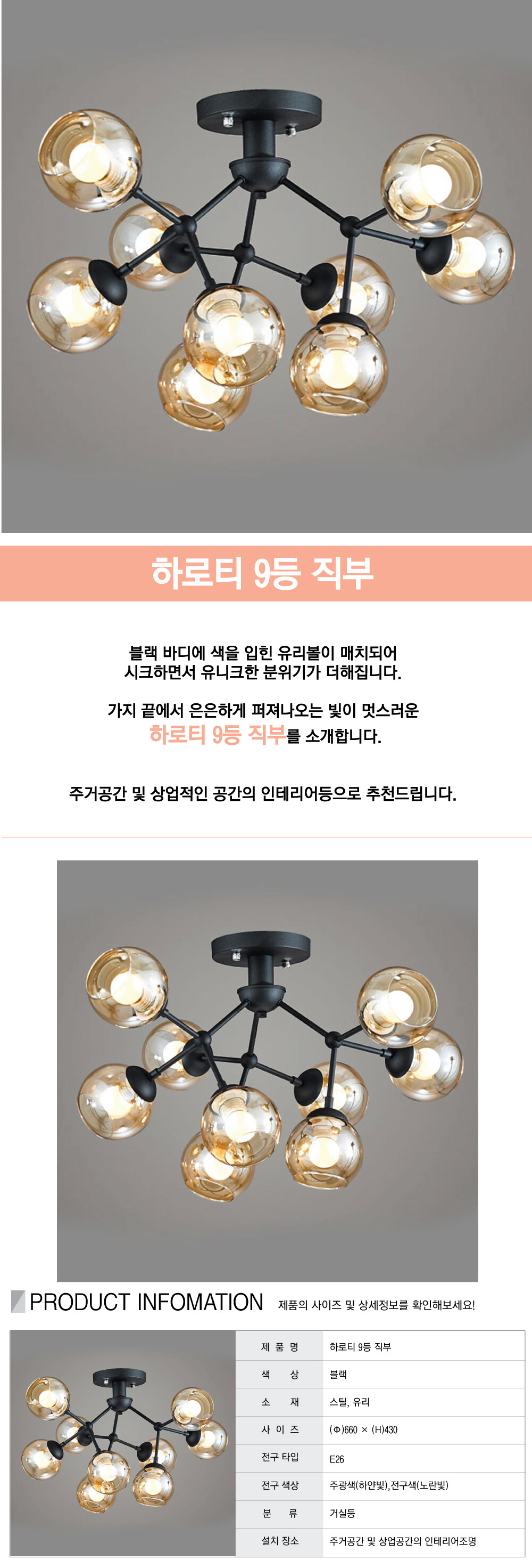 블랙 바디에 색을 입힌 유리볼이 매치되어 시크하면서 유니크한 분위기