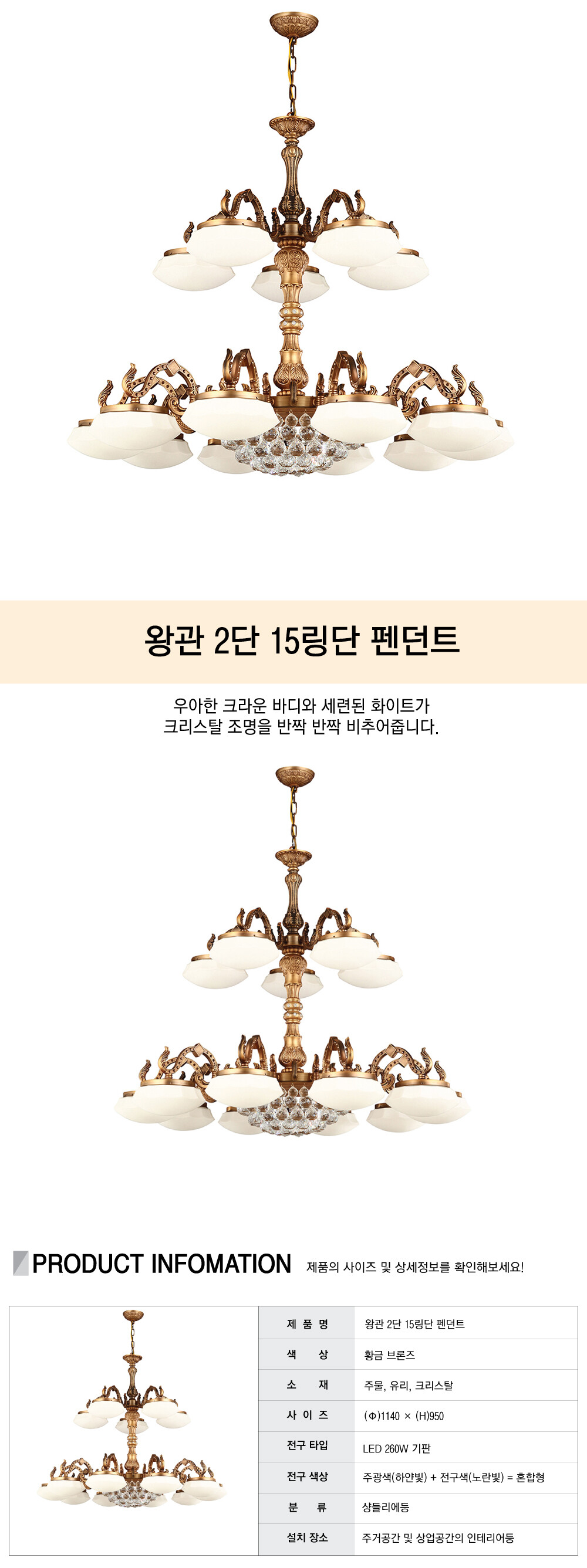 왕관 2단 15링단 펜던트 [LED 260W]
