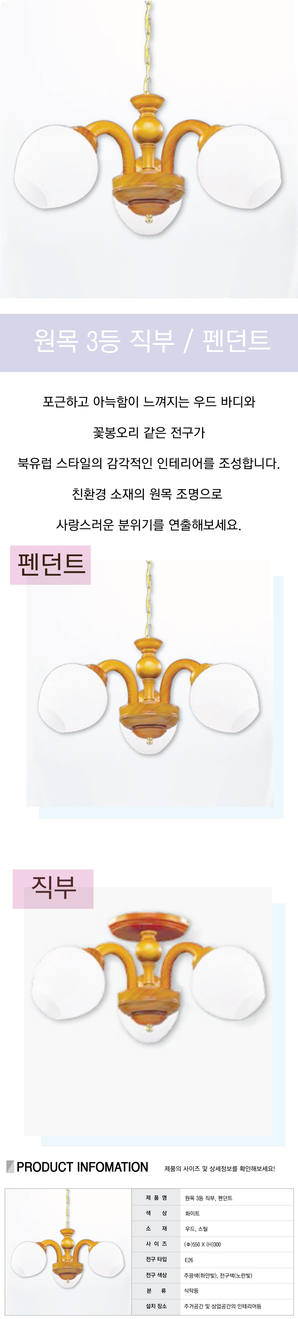 원목 3등 직부, 펜던트 [ 2 Type ]