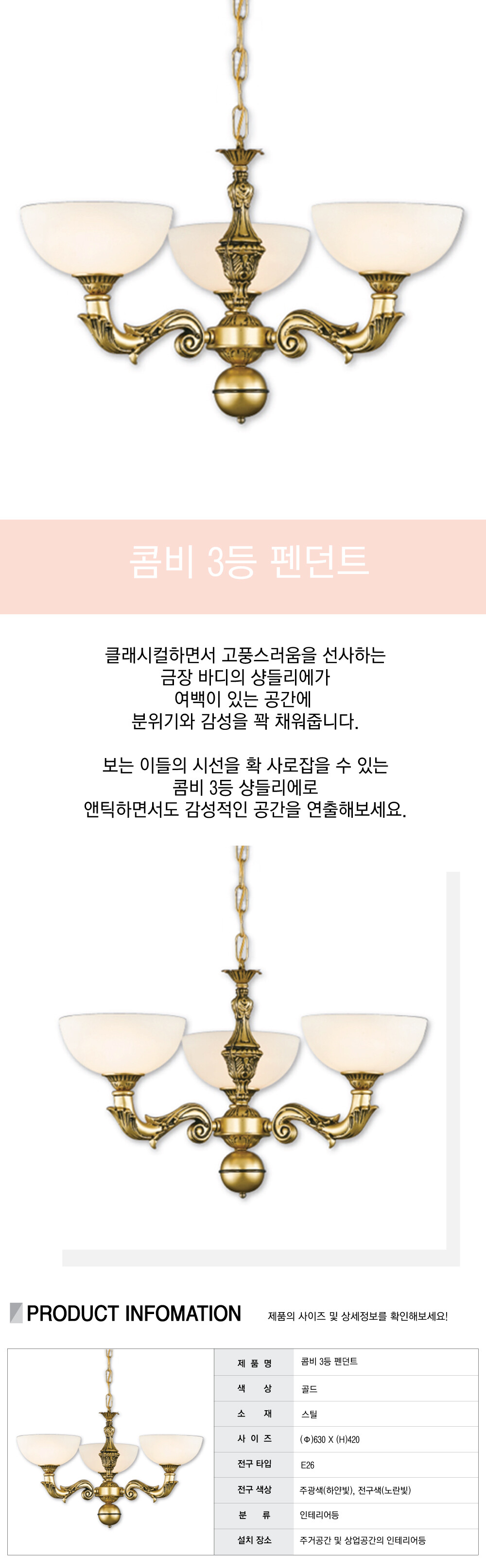 클래식컬하면서 고풍스러움을 선사하는 금장바디 샹들리에