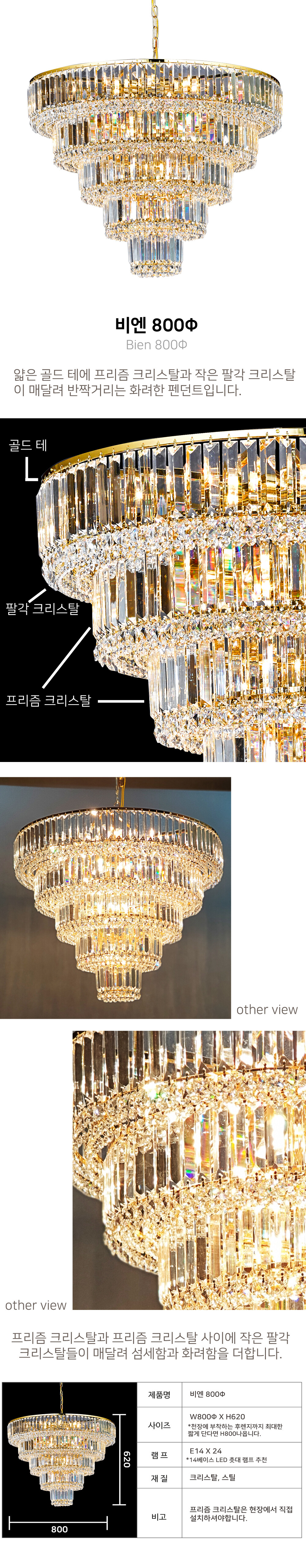 얇은 골드 테에 프리즘 크리스탈과 작은 팔각 크리스탈
