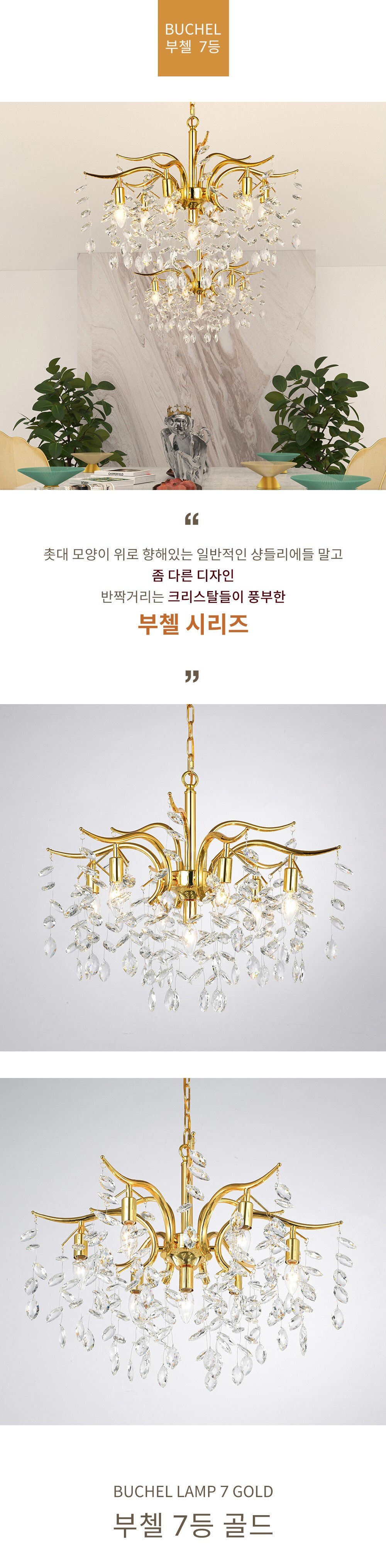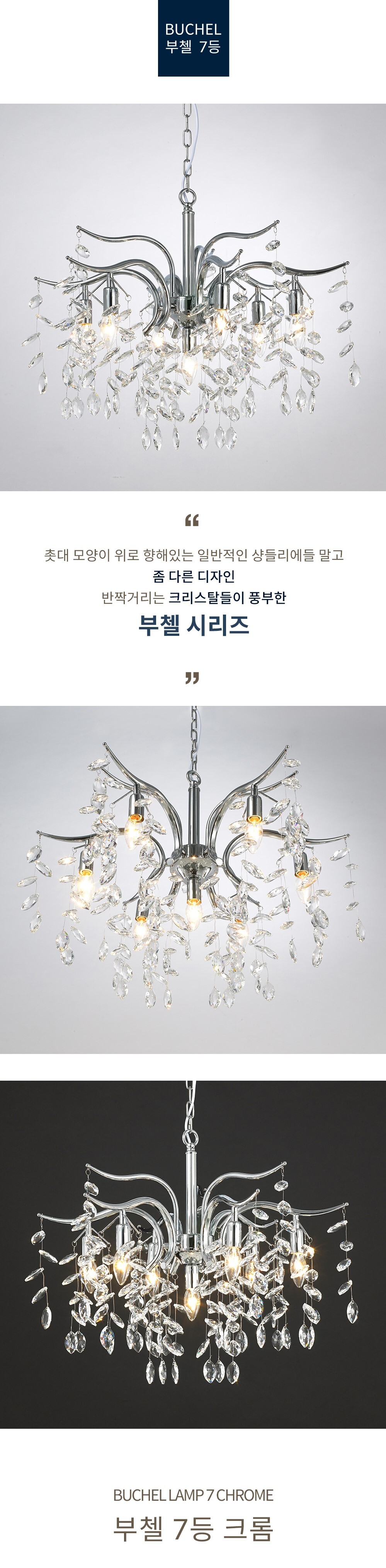 풍성한 크리스탈이 매달려 아름다운 자태를 뽐내는 우아한 샹들리에