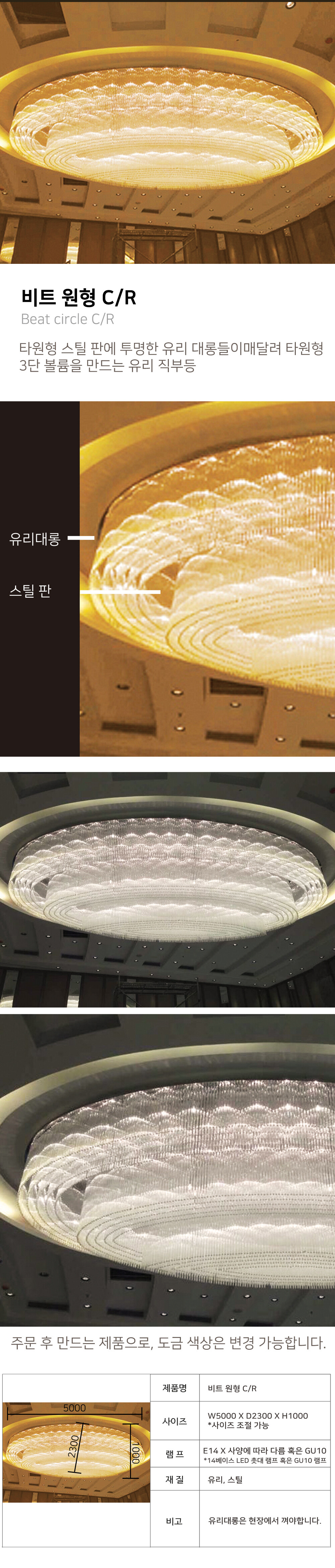 투명한 유리대롱들이 매달려 풍성한 볼륨을 만드는 럭셔리 직부등