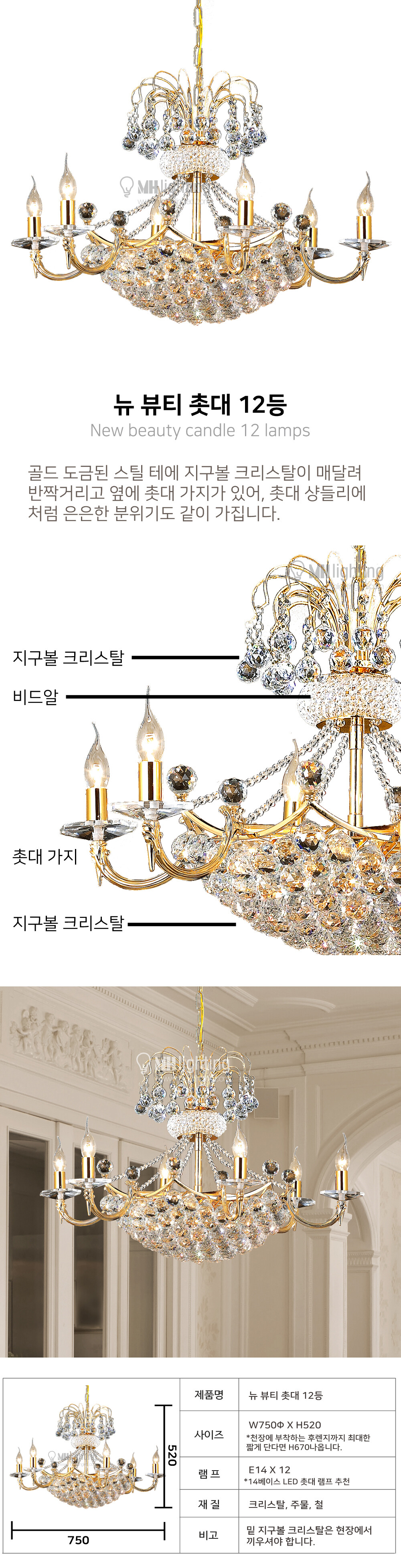 뉴 뷰티 촛대 12등 펜던트