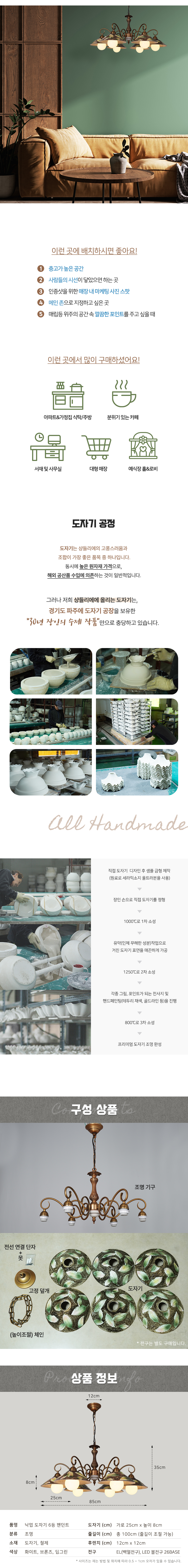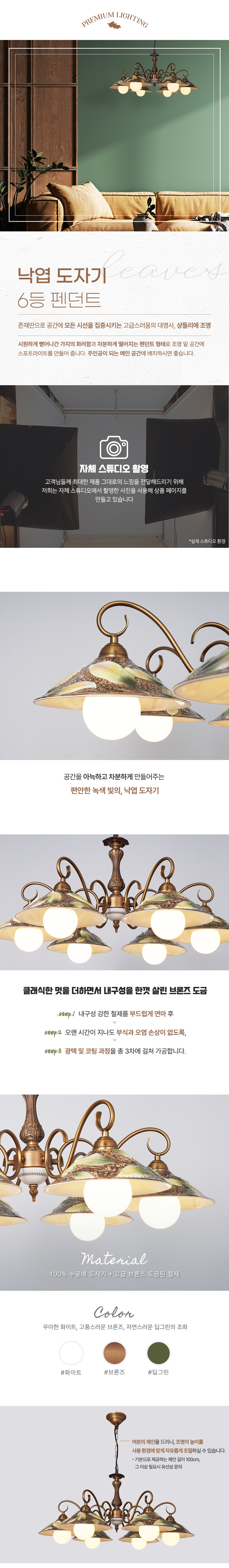 낙엽 도자기 6등 펜던트