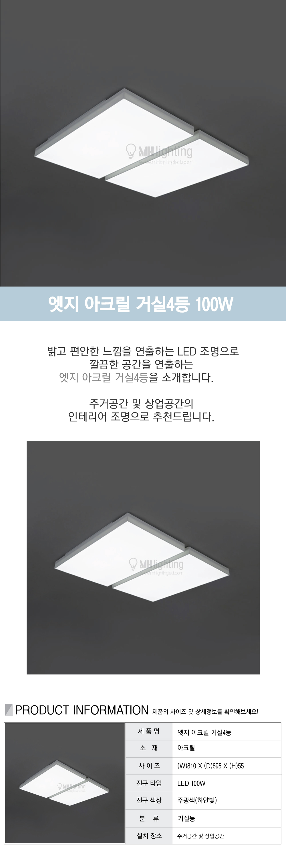 LED 엣지 아크릴 거실4등 100W
