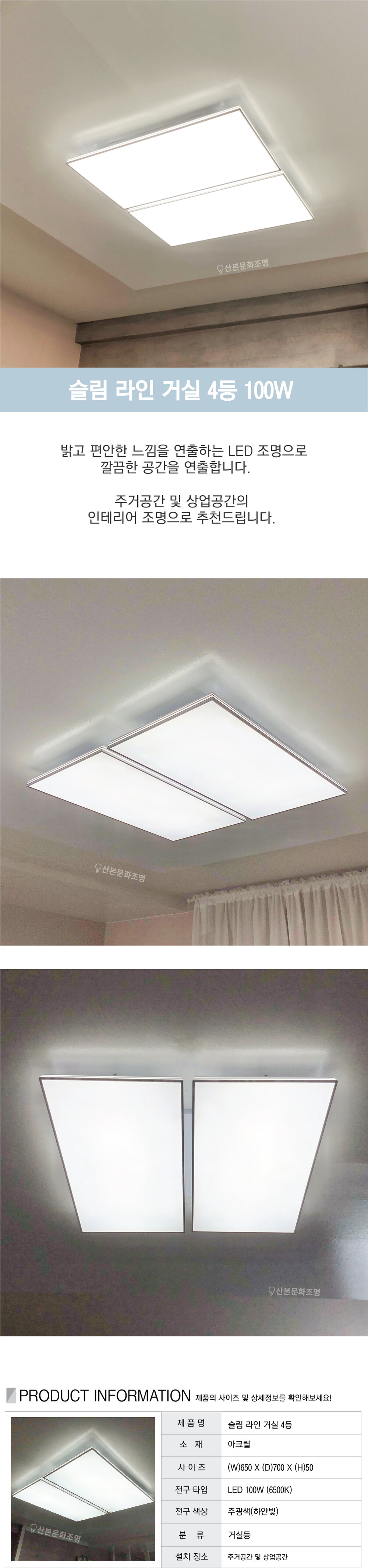 슬림 라인 거실4등 100W