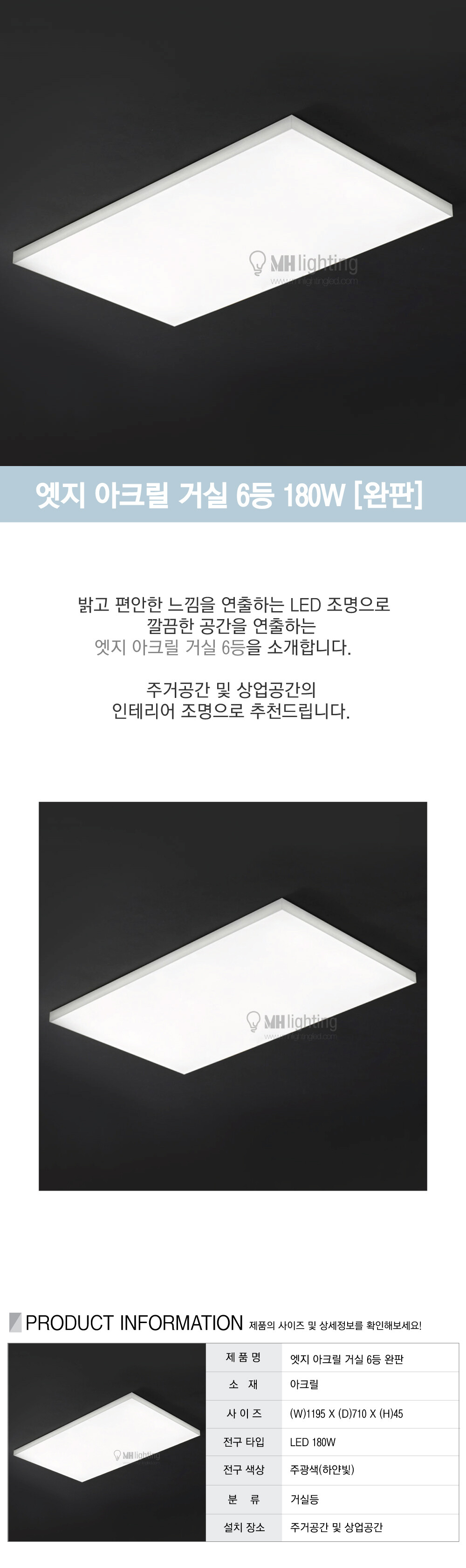 LED 엣지 아크릴 거실 6등 180W [완판타입]