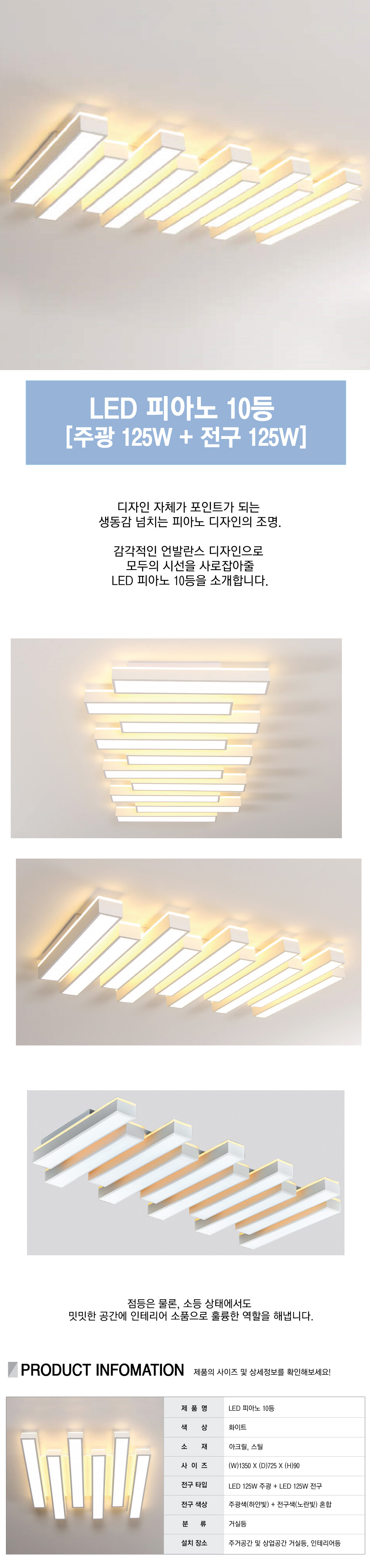 LED 230W 화이트 건반 10등 [주광 130W + 전구 100W]