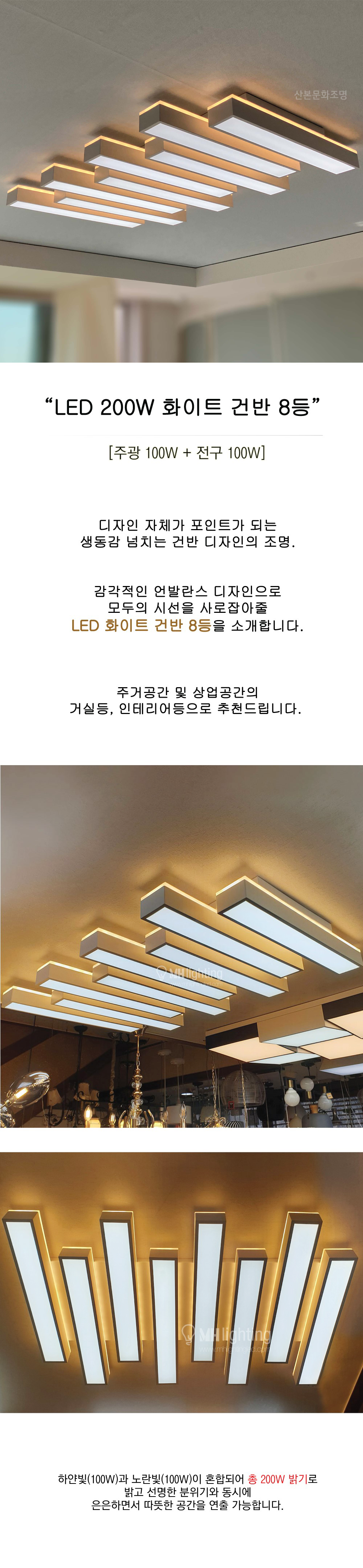 LED 200W 화이트 건반 8등 [주광100W + 전구100W]