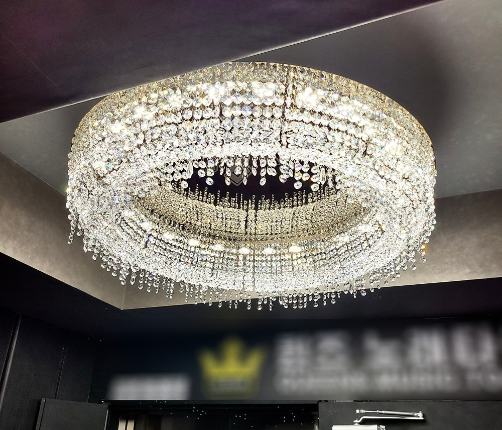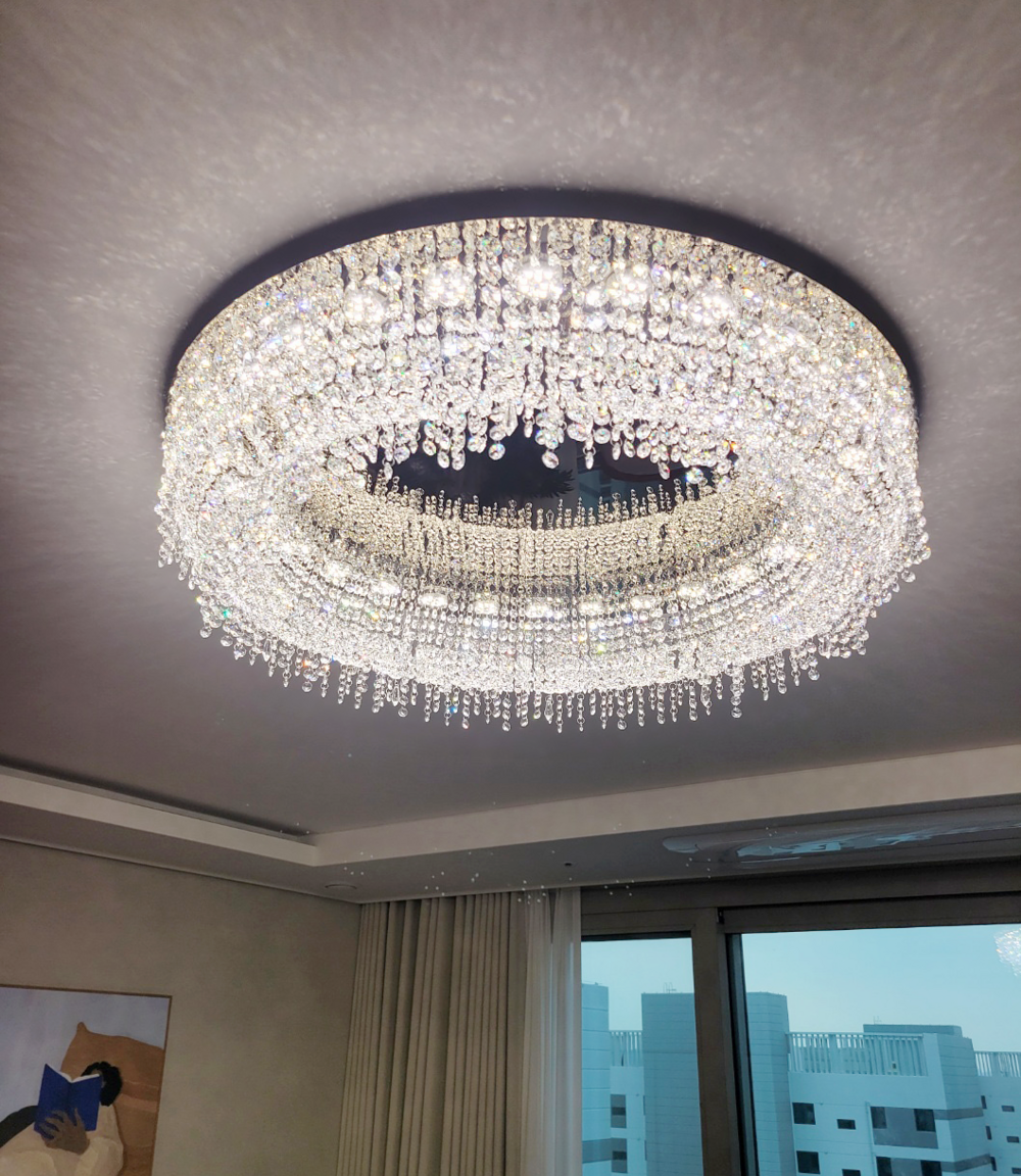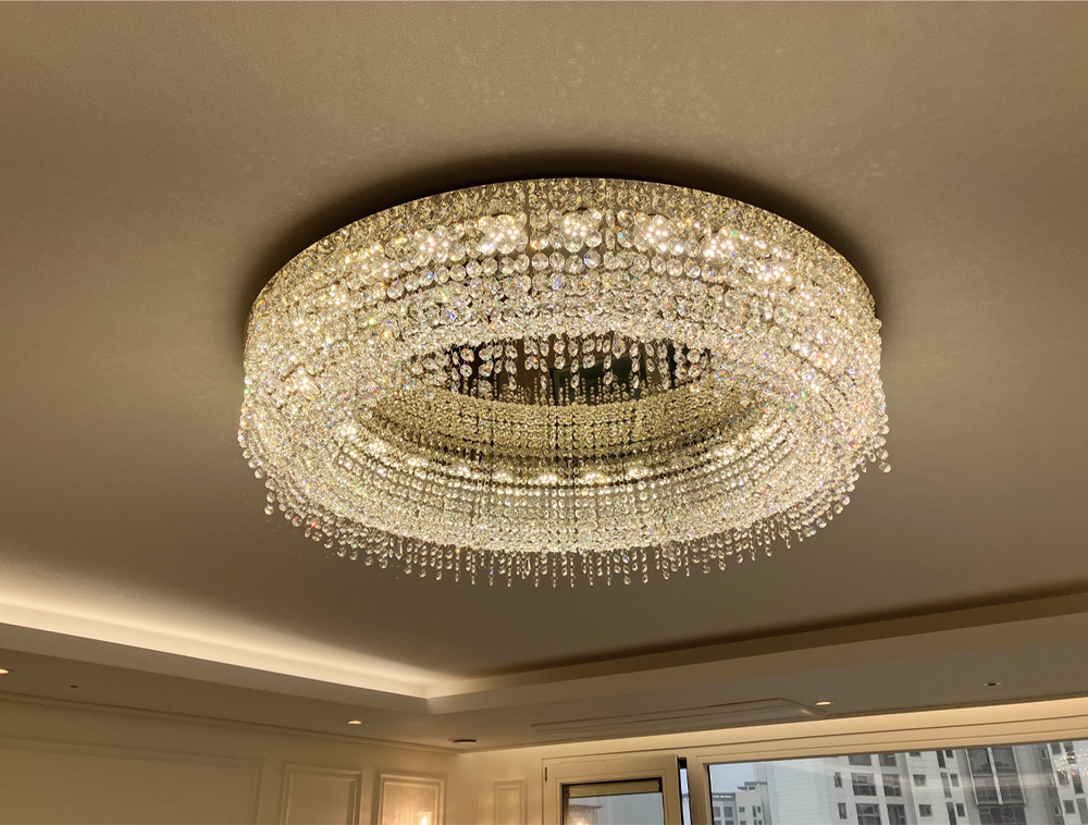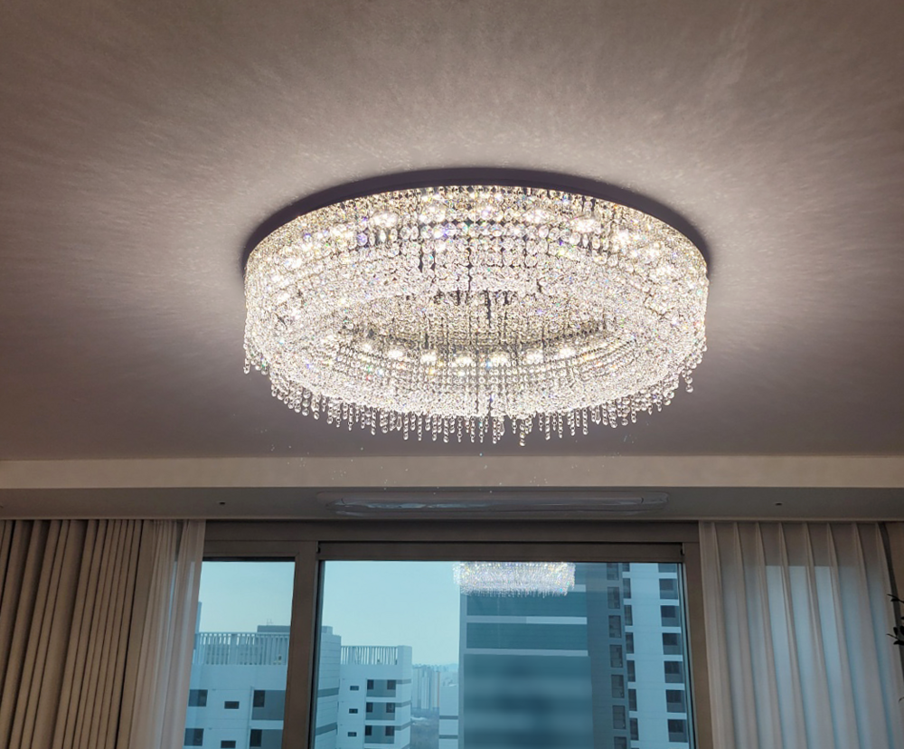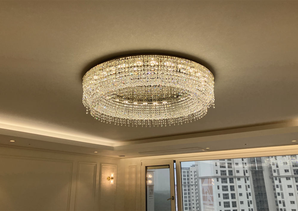 수많은 크리스탈이 어우러져 고급스러운 분위기를 자아내는 럭셔리 직부등