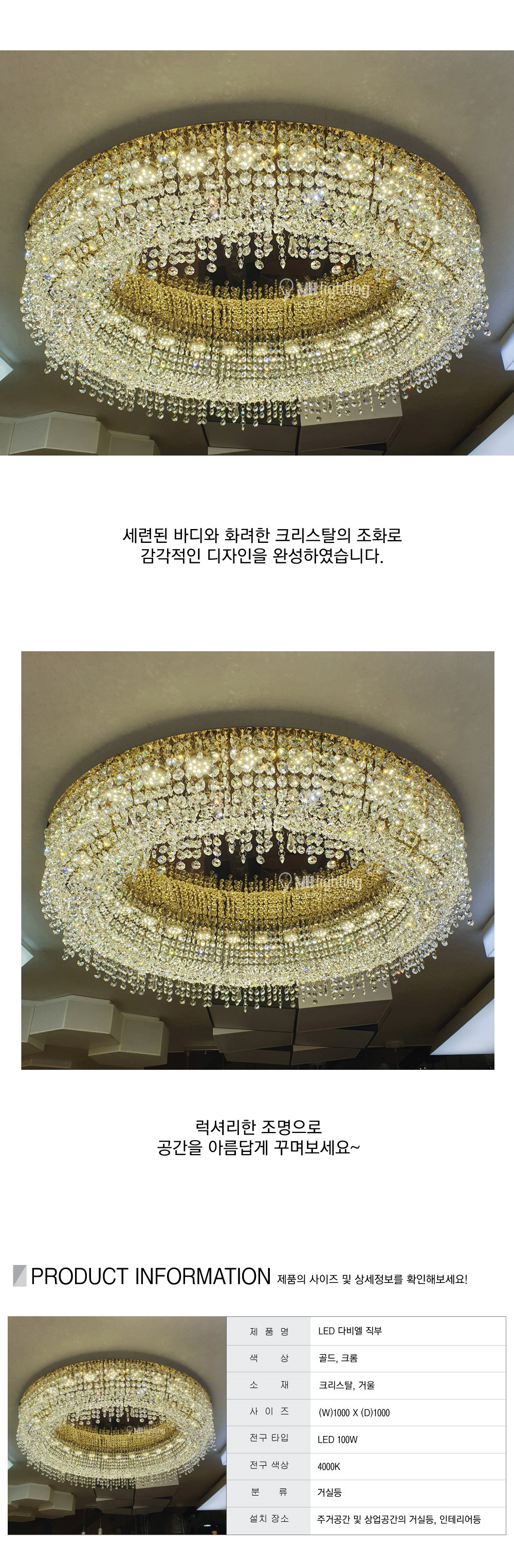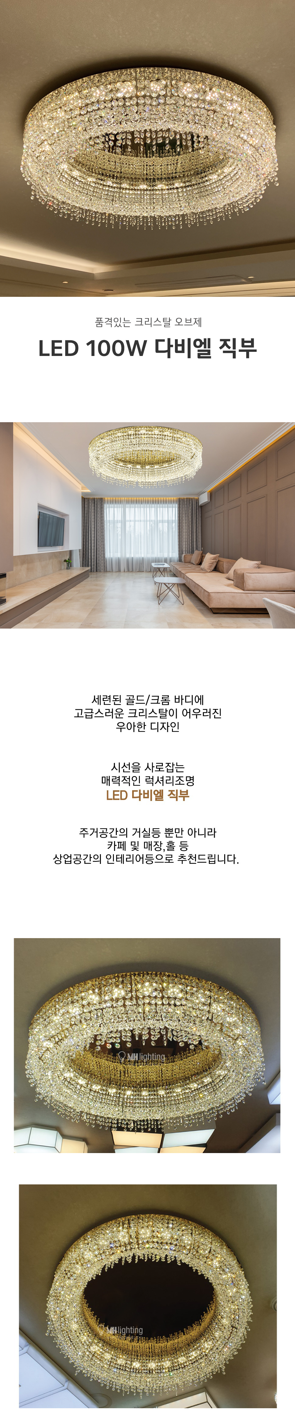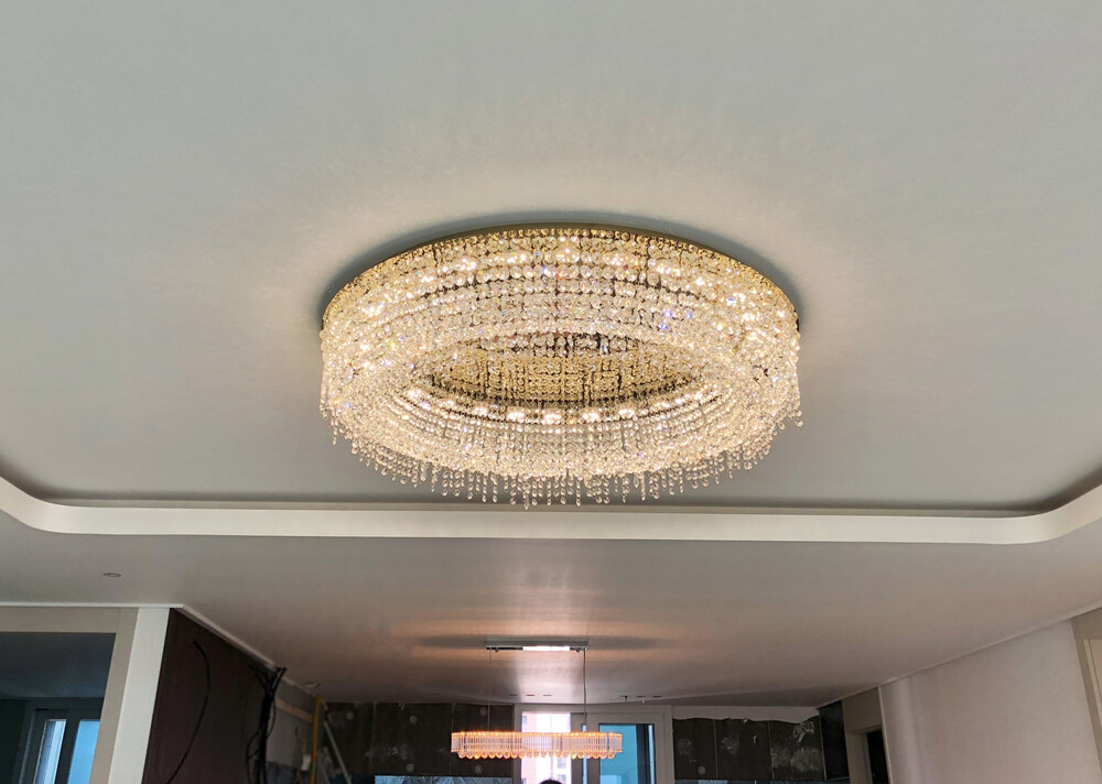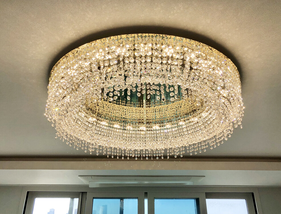 수많은 크리스탈이 어우러져 고급스러운 분위기를 자아내는 럭셔리 직부등