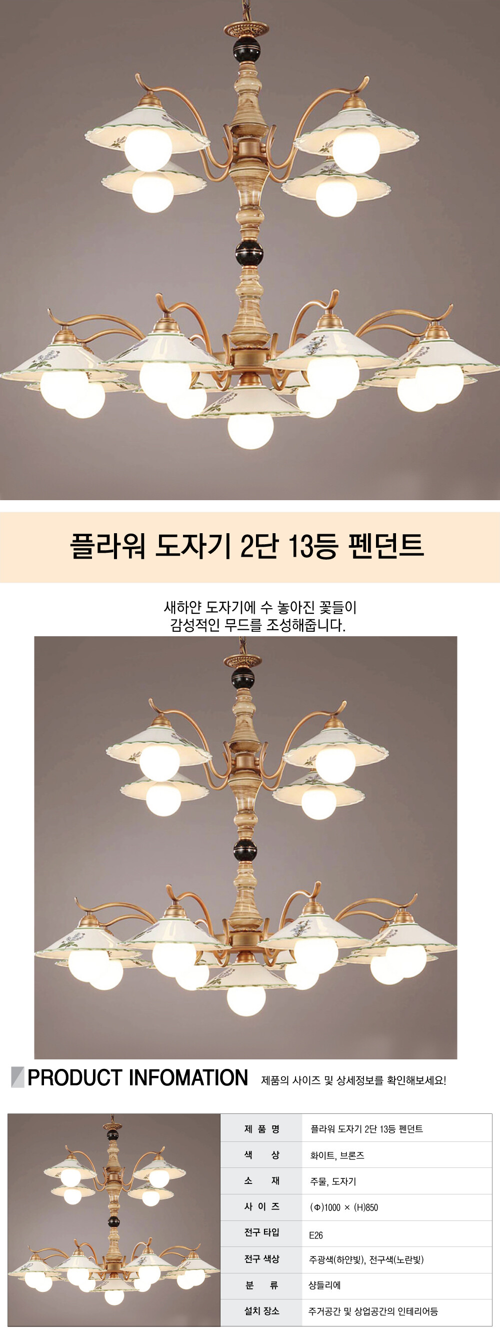 플라워 도자기 2단 13등 펜던트