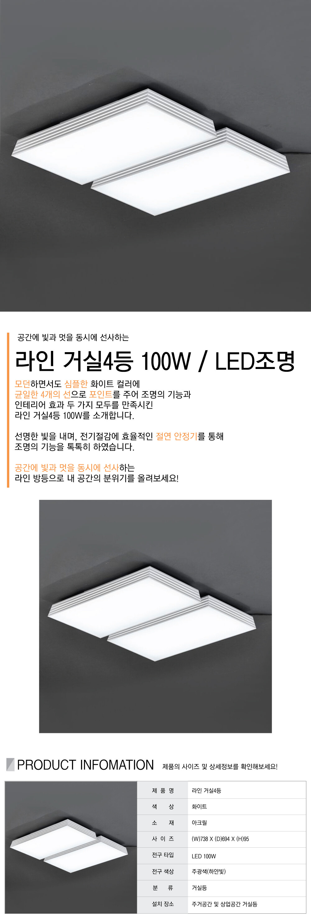 라인 거실 4등 LED 100W [2+2]
