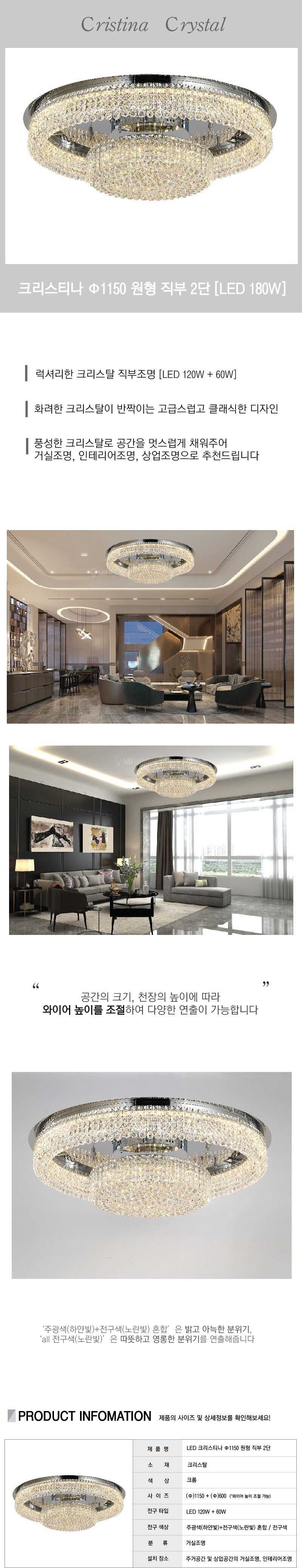 크리스티나 Φ1150 원형 직부 2단 [LED 180W] 국내제작