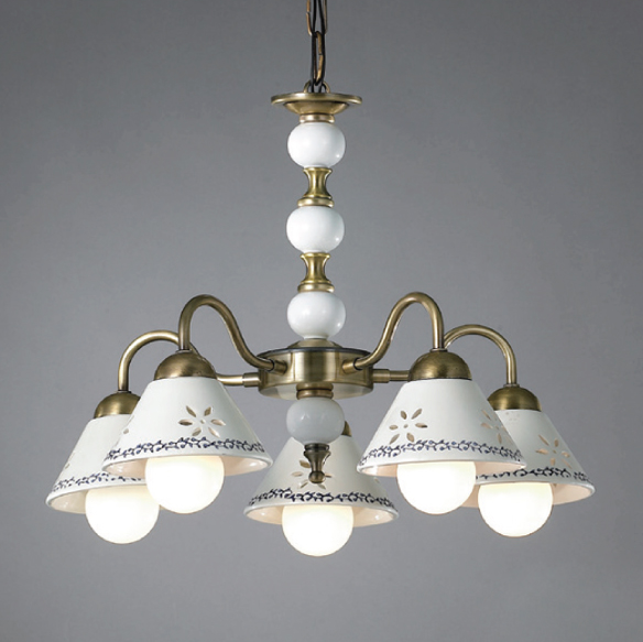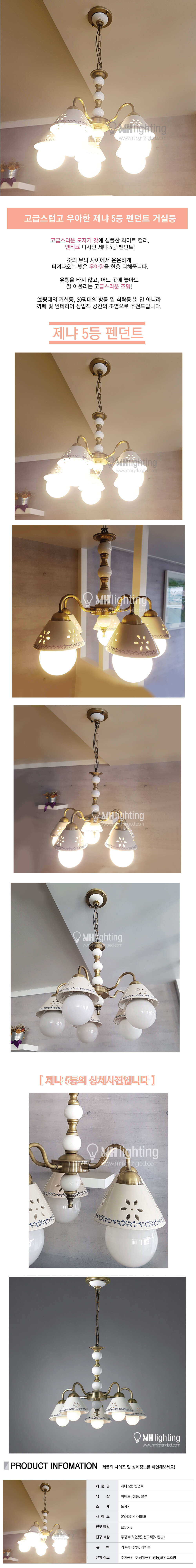 고급스러운 도자기 갓에 심플한 화이트 컬러, 엔티크 디자인 제냐 5등 펜던트