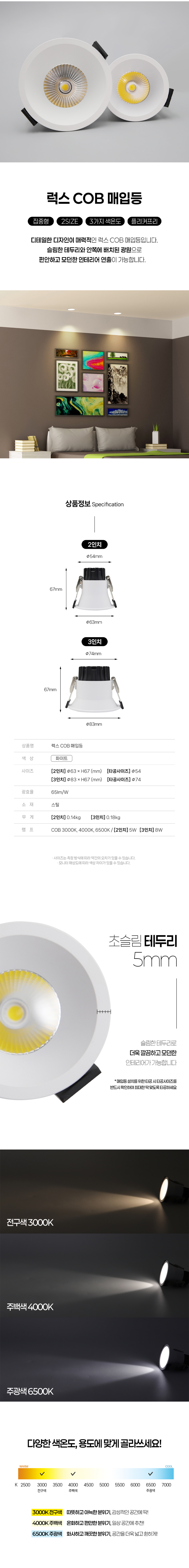 LED 럭스 COB 매입등 (2인치/3인치) 집중형