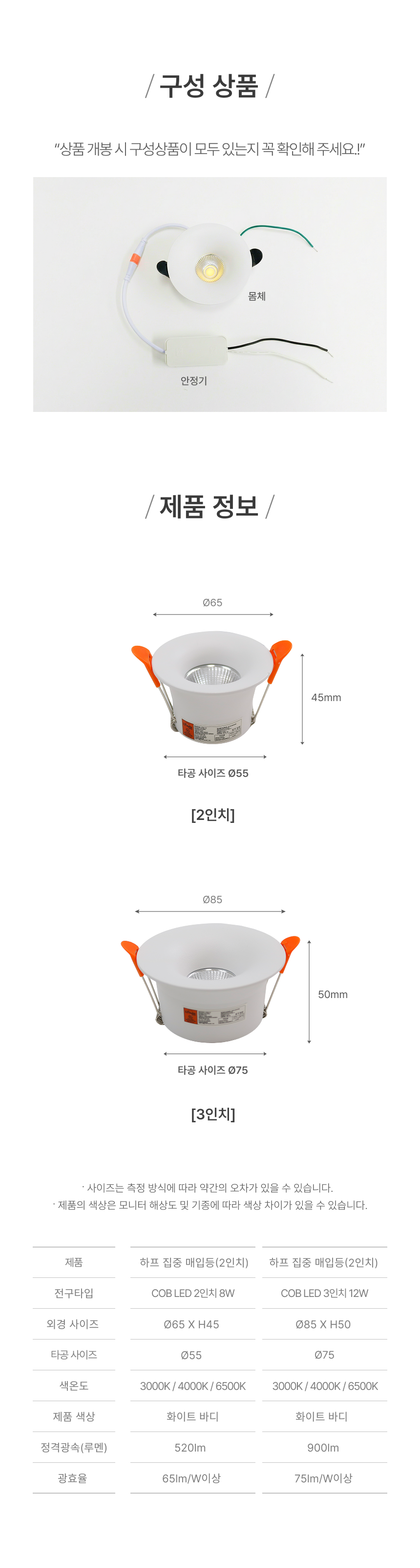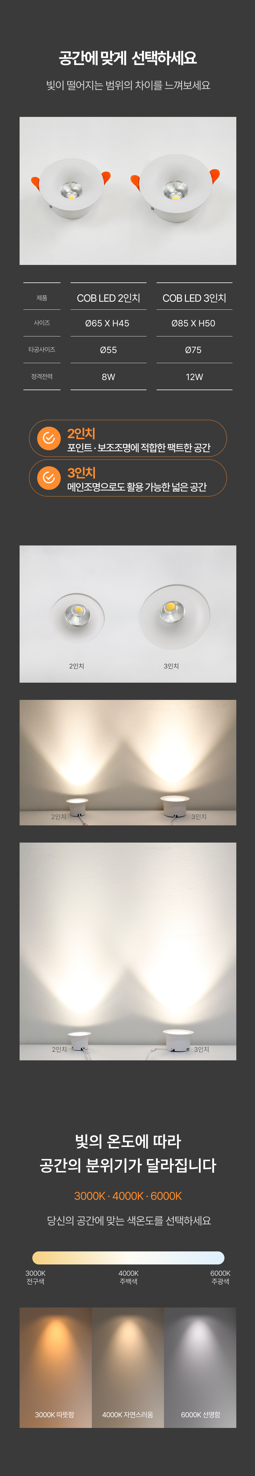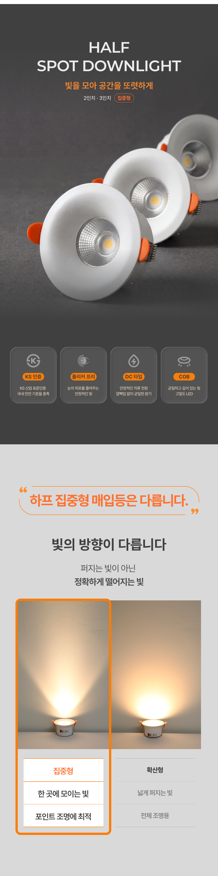 LED 하프 집중 COB 매입등 (2인치/3인치)
