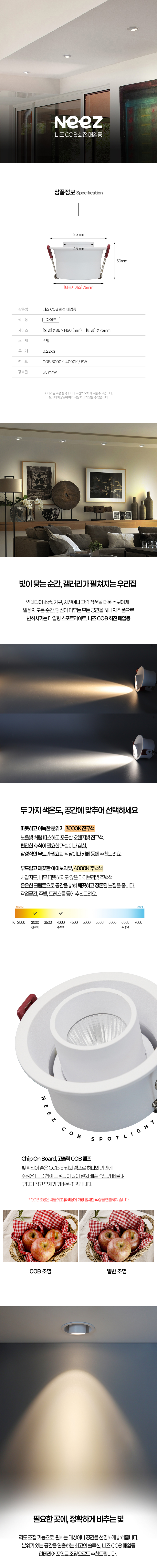 LED 니즈 COB 회전 매입등 6W
