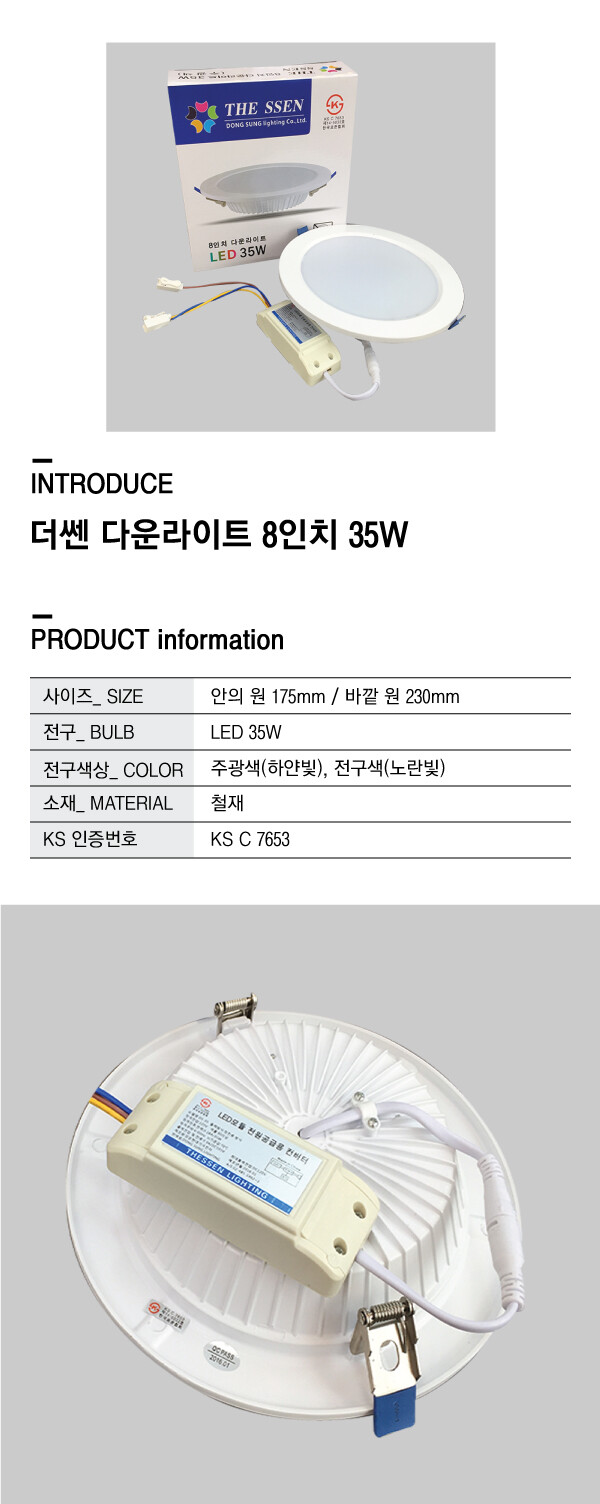 [더쎈] 8인치 다운라이트 35W (하얀빛,노란빛)