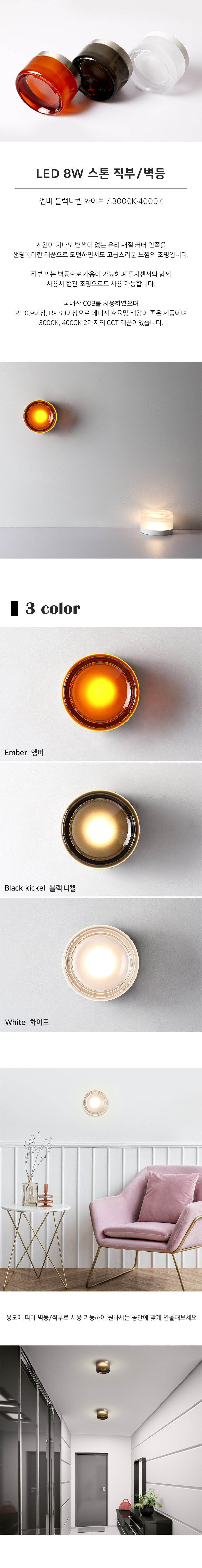 LED 8W 스톤 직부/벽등 (3 color)