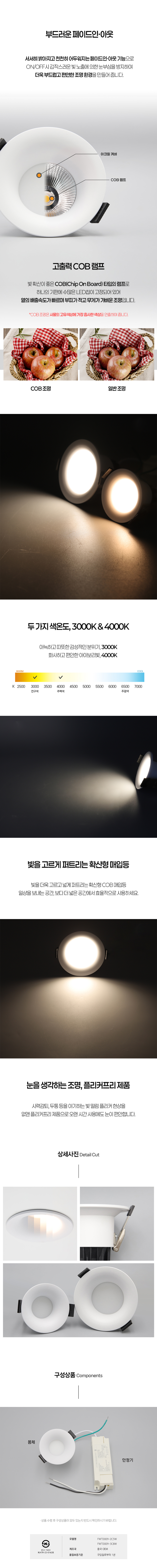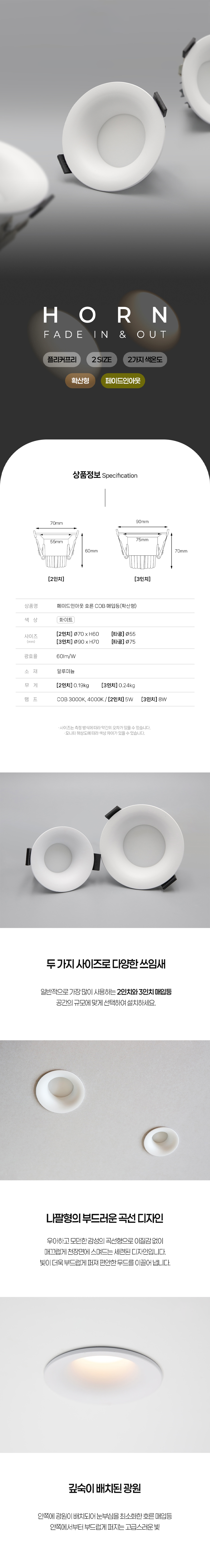 [페이드인아웃] LED 호른 COB 확산형 매입등 (2인치/3인치)