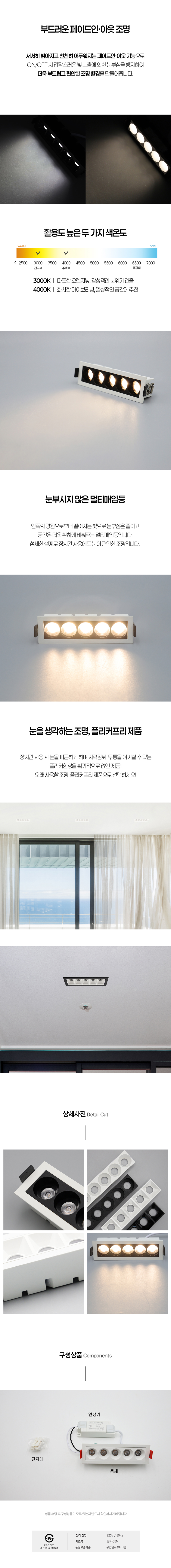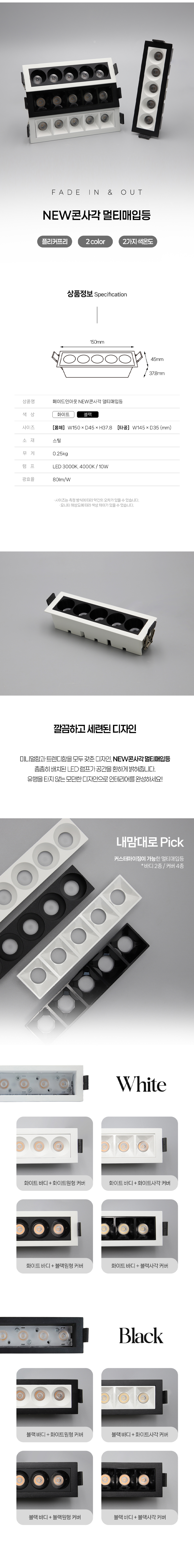 [페이드인아웃] LED 콘사각 멀티매입등 10W