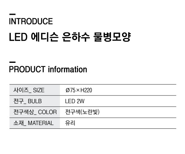 유니크한 불빛으로 무드있는 분위기와 아늑한 공간을 만들어주는 물병모양의 인테리어전구