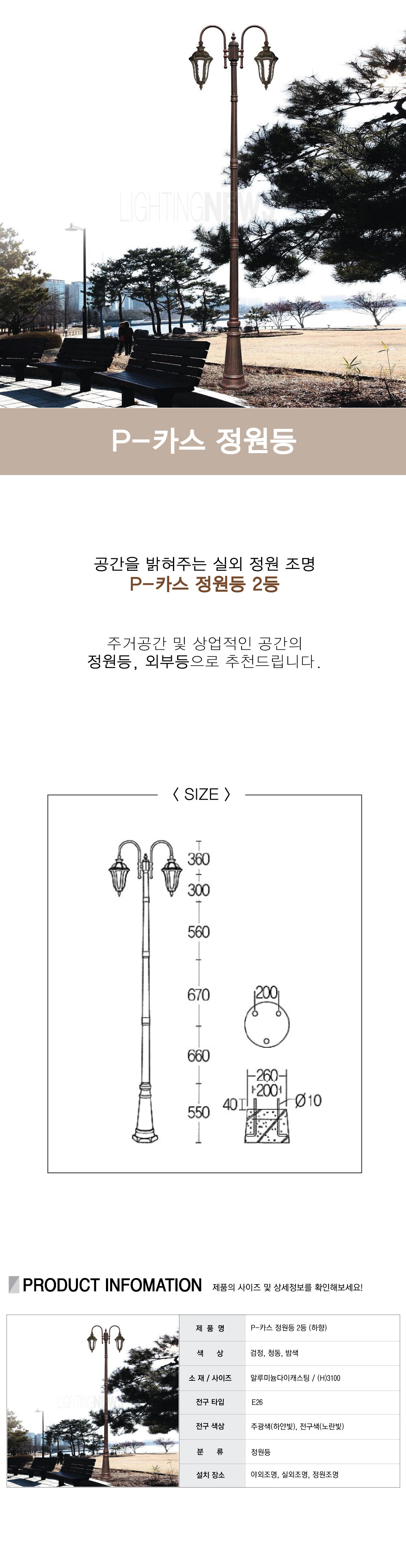 P-카스 정원등 2등 (3 Color) [외부조명 / 야외조명 / 정원등]