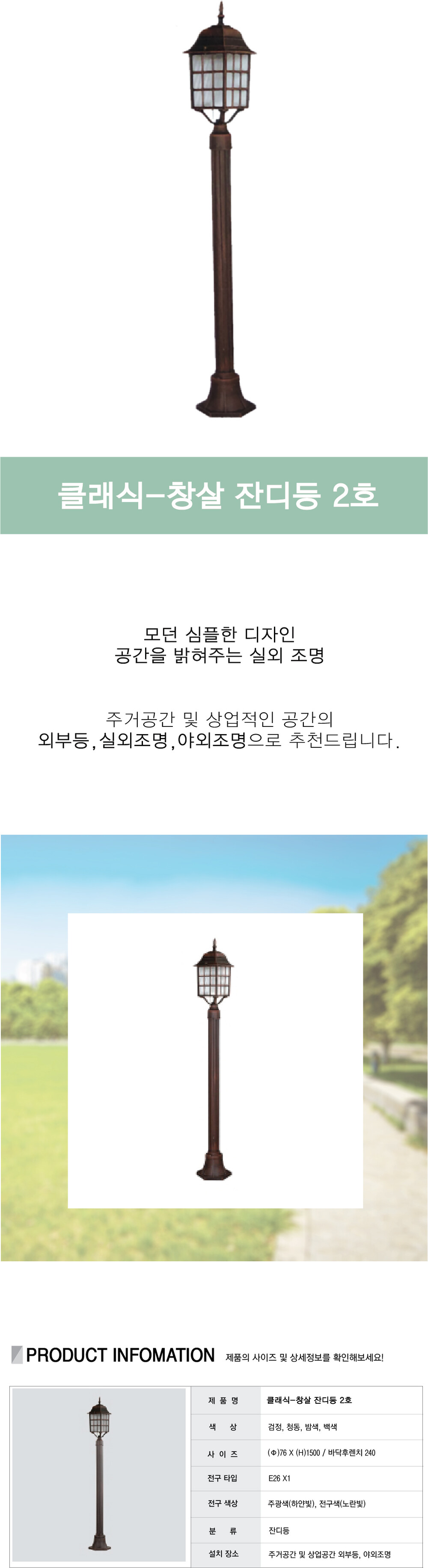 클래식-창살 잔디등 2호 [4color]