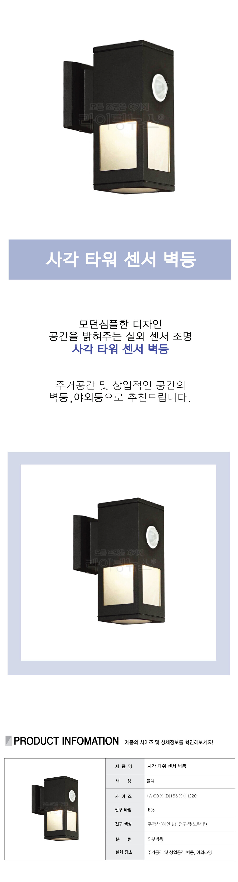 사각 타워 센서 벽등 (2 color) [외부조명 / 야외조명 / 실외벽등 / 정원등]