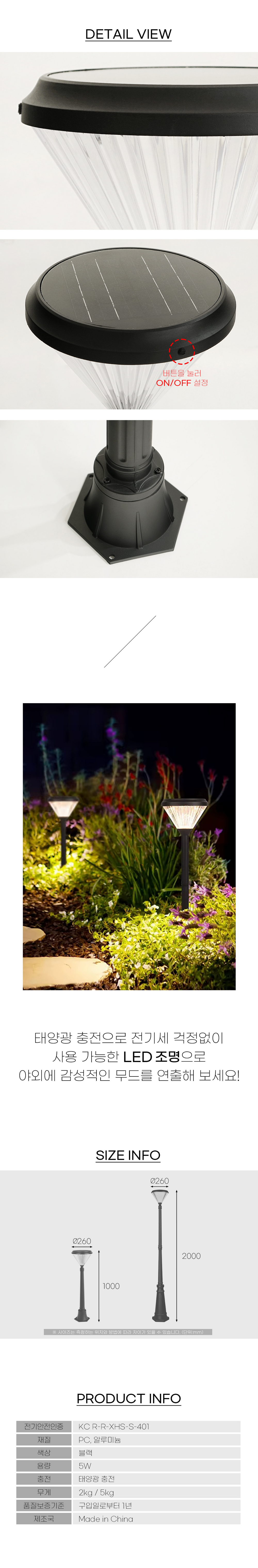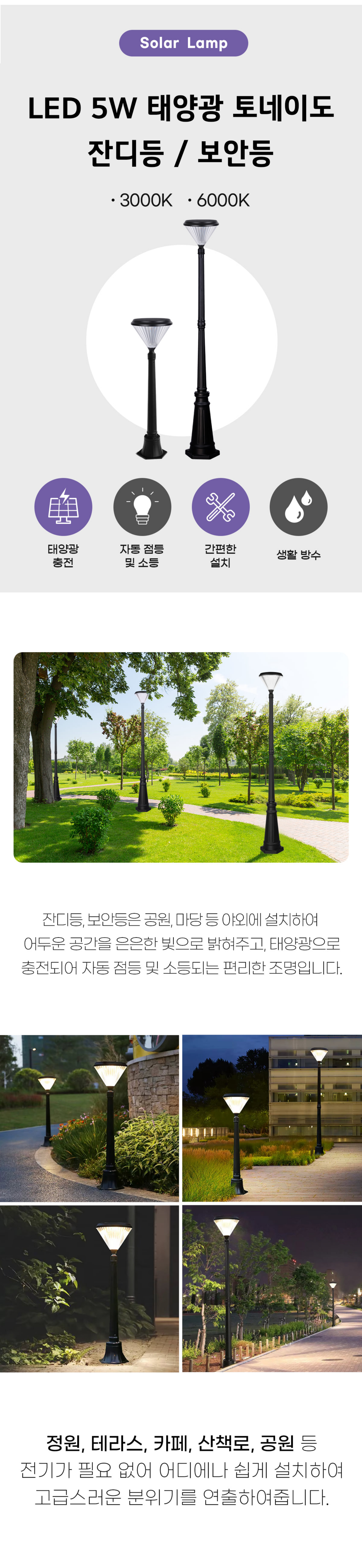 LED 5W 태양광 토네이도 잔디등/보안등 (1M, 2M)