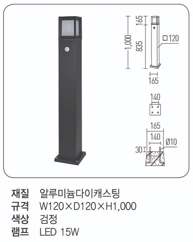 LED 루피 센서 잔디등 15W (대)