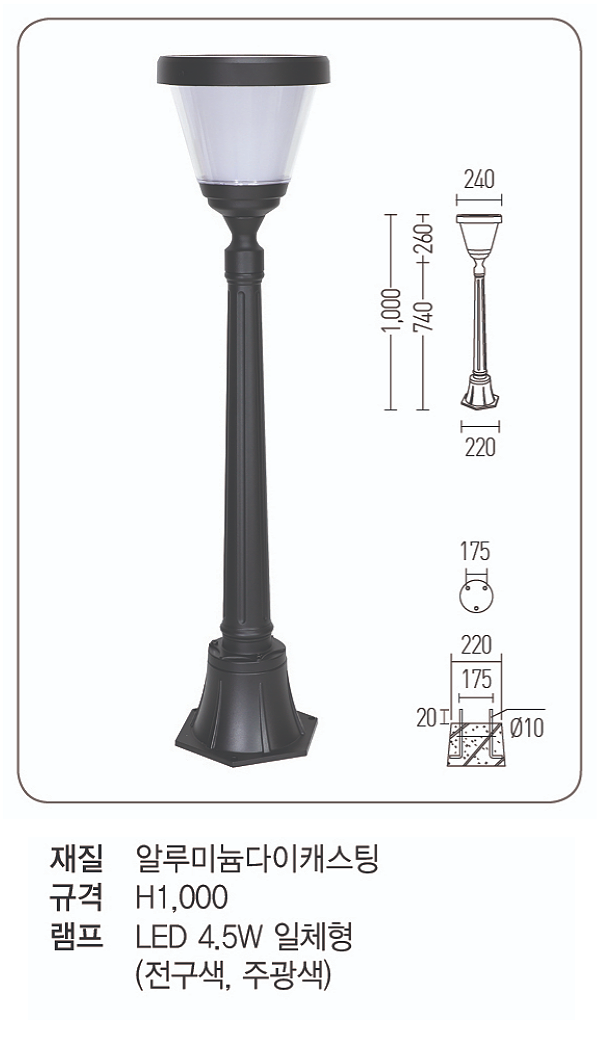 LED 태양광 에스투 잔디등 4.5W