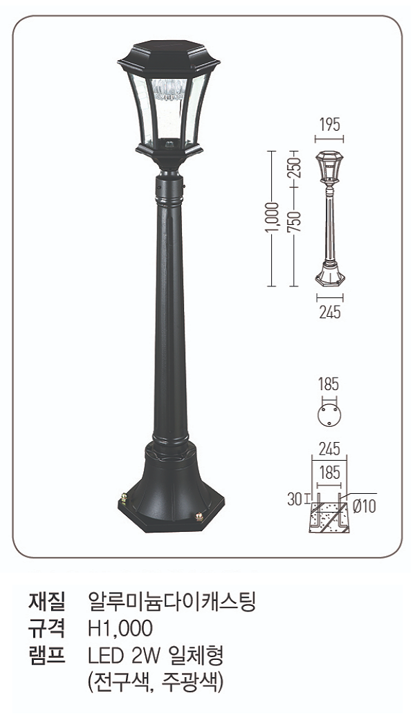 LED 태양광 파고 잔디등 2W